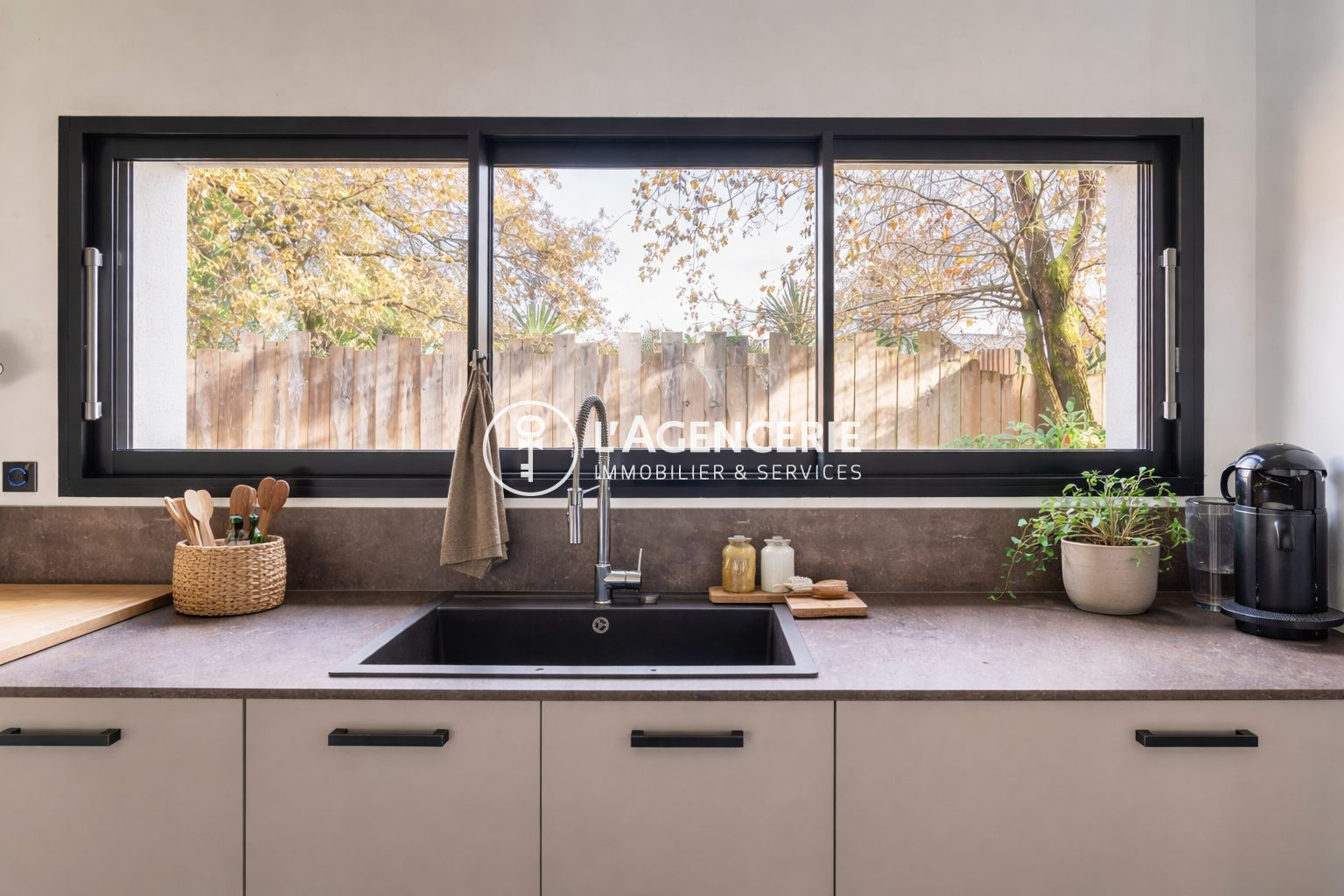 ...Située dans une impasse paisible, cette propriété de 250 m² sur un terrain de 757 m² est un havre...