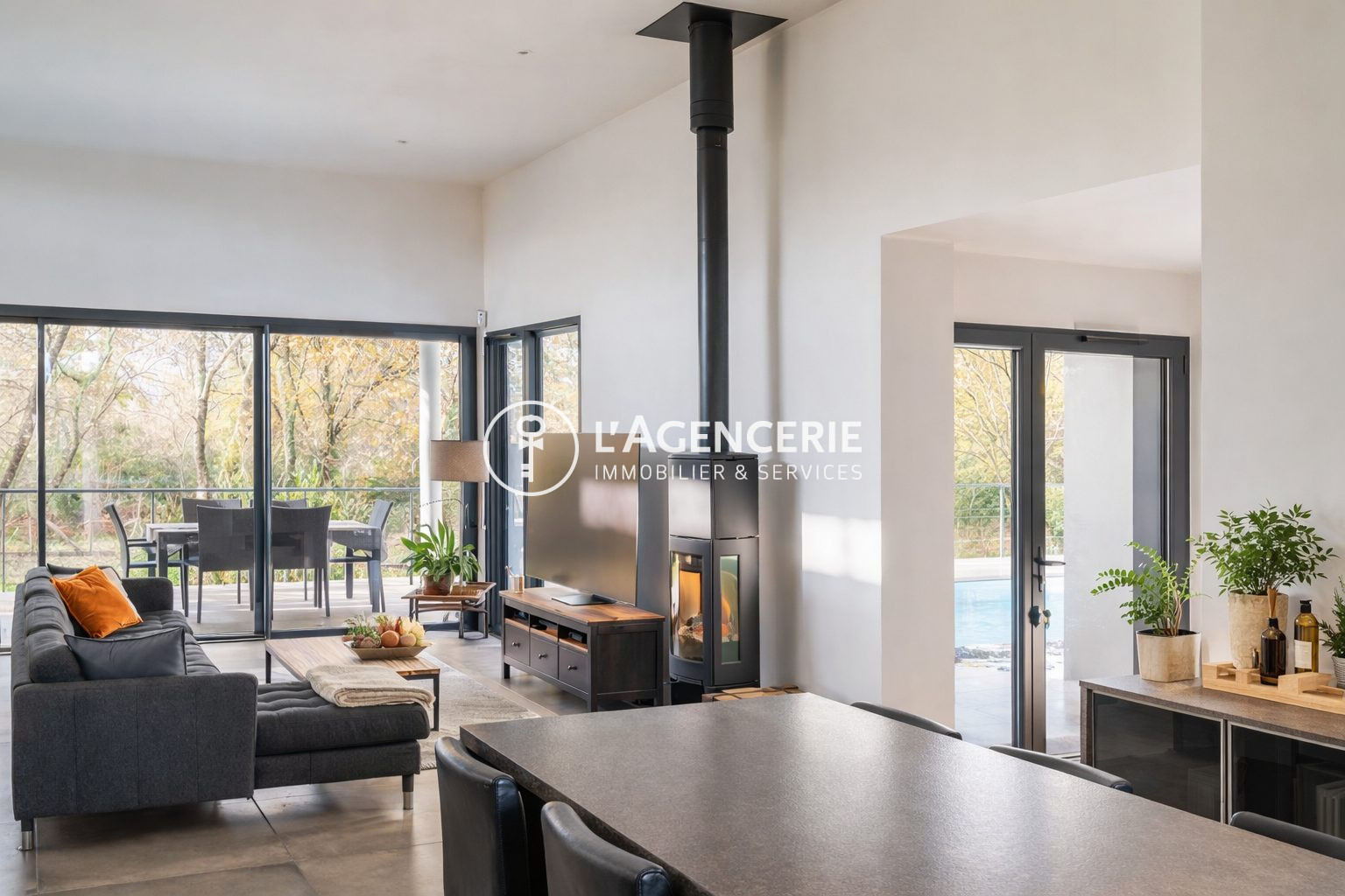 ...1) L'espace intérieur :- Vaste séjour de 50 m² avec un salon intimiste et chaleureux...