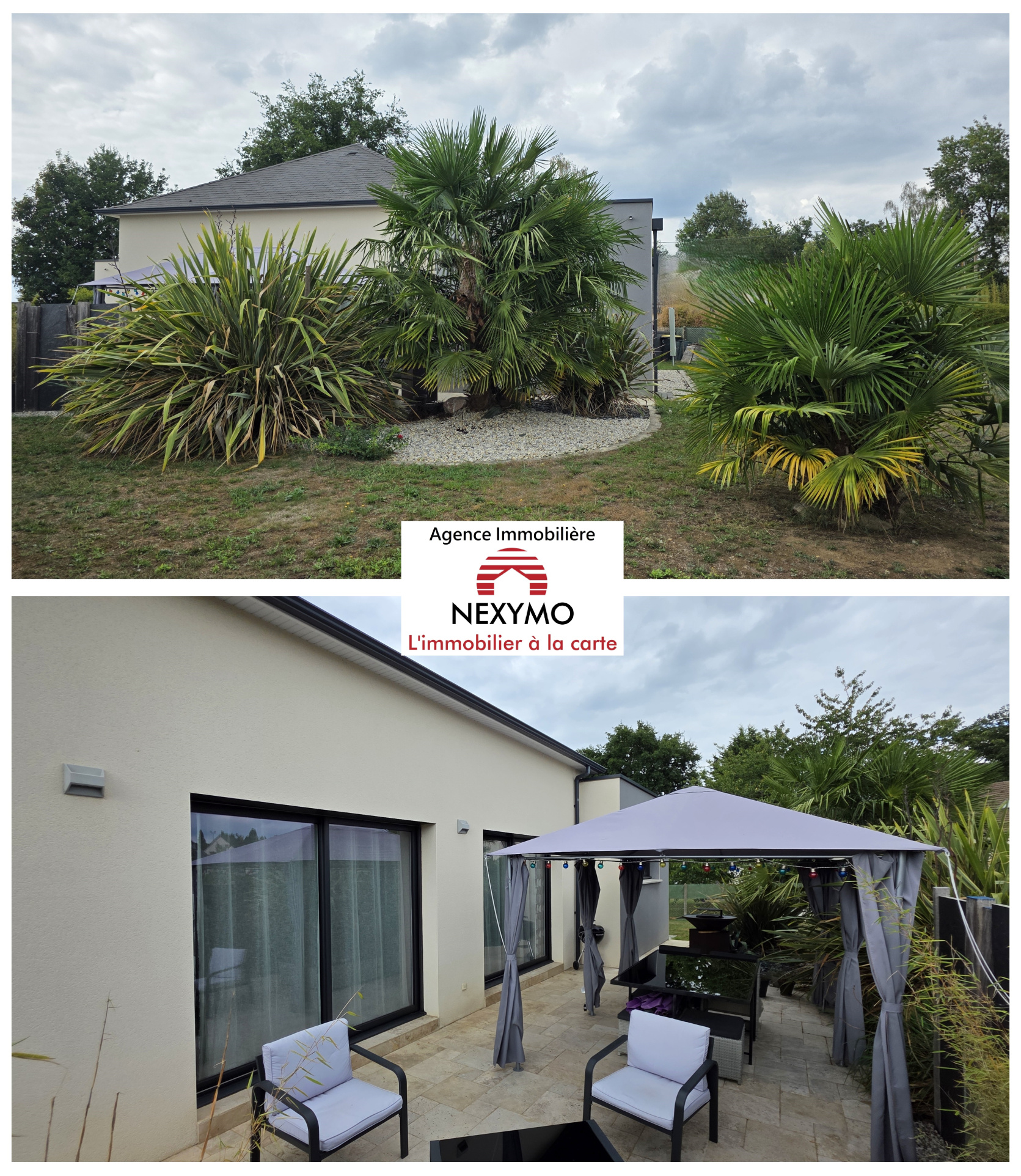 ... : Salon, séjour, cuisine équipée, WC, salon d'été, Patio privé. ? Premier étage : Deux chambres spa...