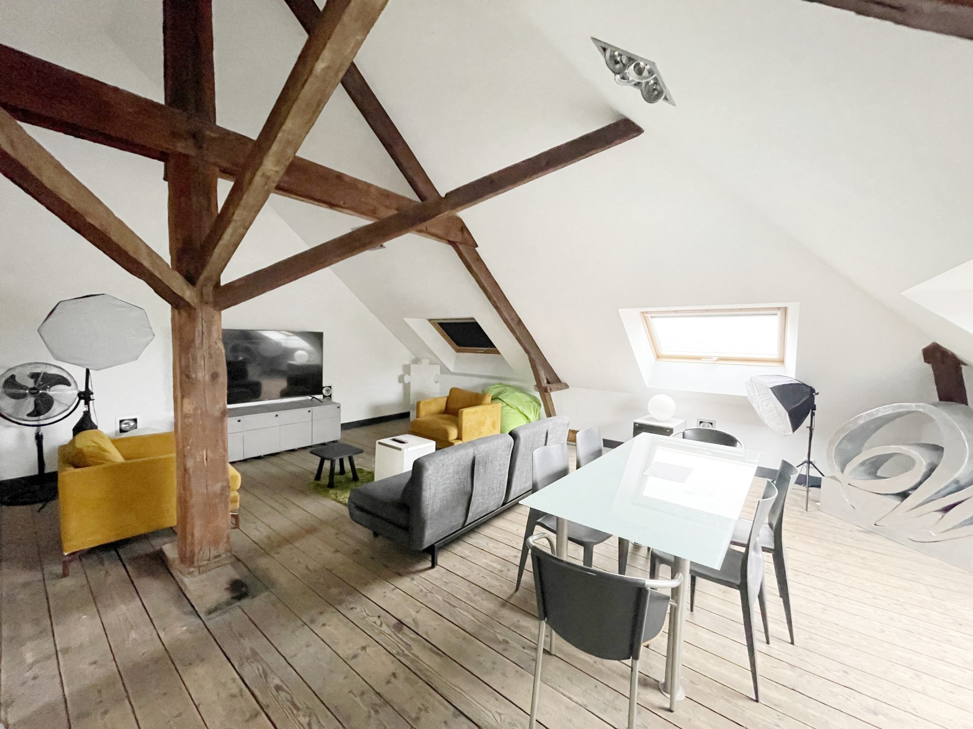 ...Elle offre de belles pièces de vie chaleureuses, un salon avec parquet ancien plein de charme et...