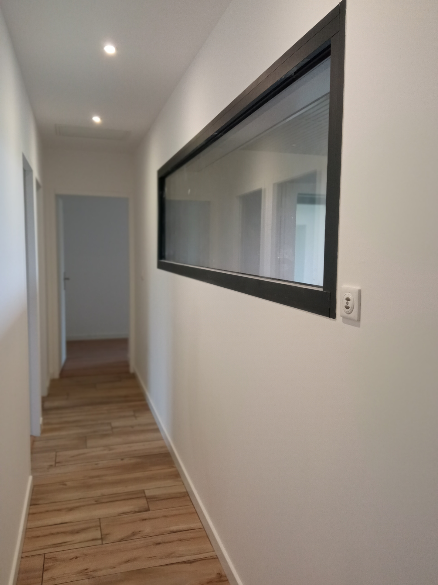 ... avec un bureau/dressing, un couloir avec des rangements desservant une deuxième chambre, une salle ...