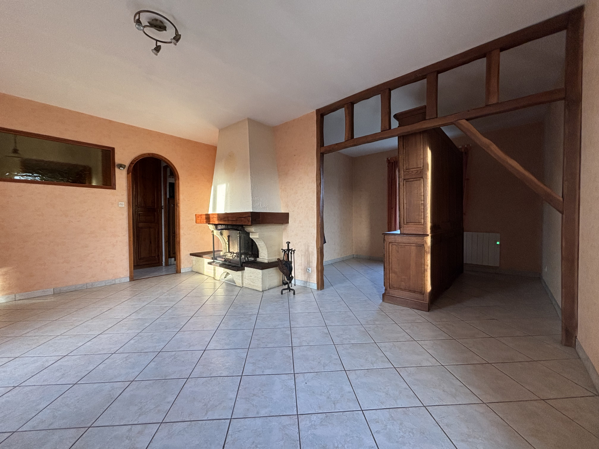 ...Elle se compose au rez de chaussée d'une grande entrée avec un premier poele à bois pour vous...