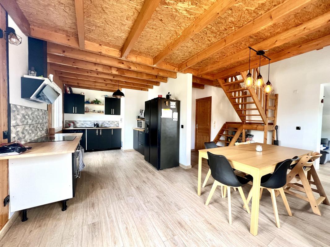 ...Au rez-de chaussée, elle se compose d'une grande pièce de vie de 45 m², avec cuisine aménagée et...