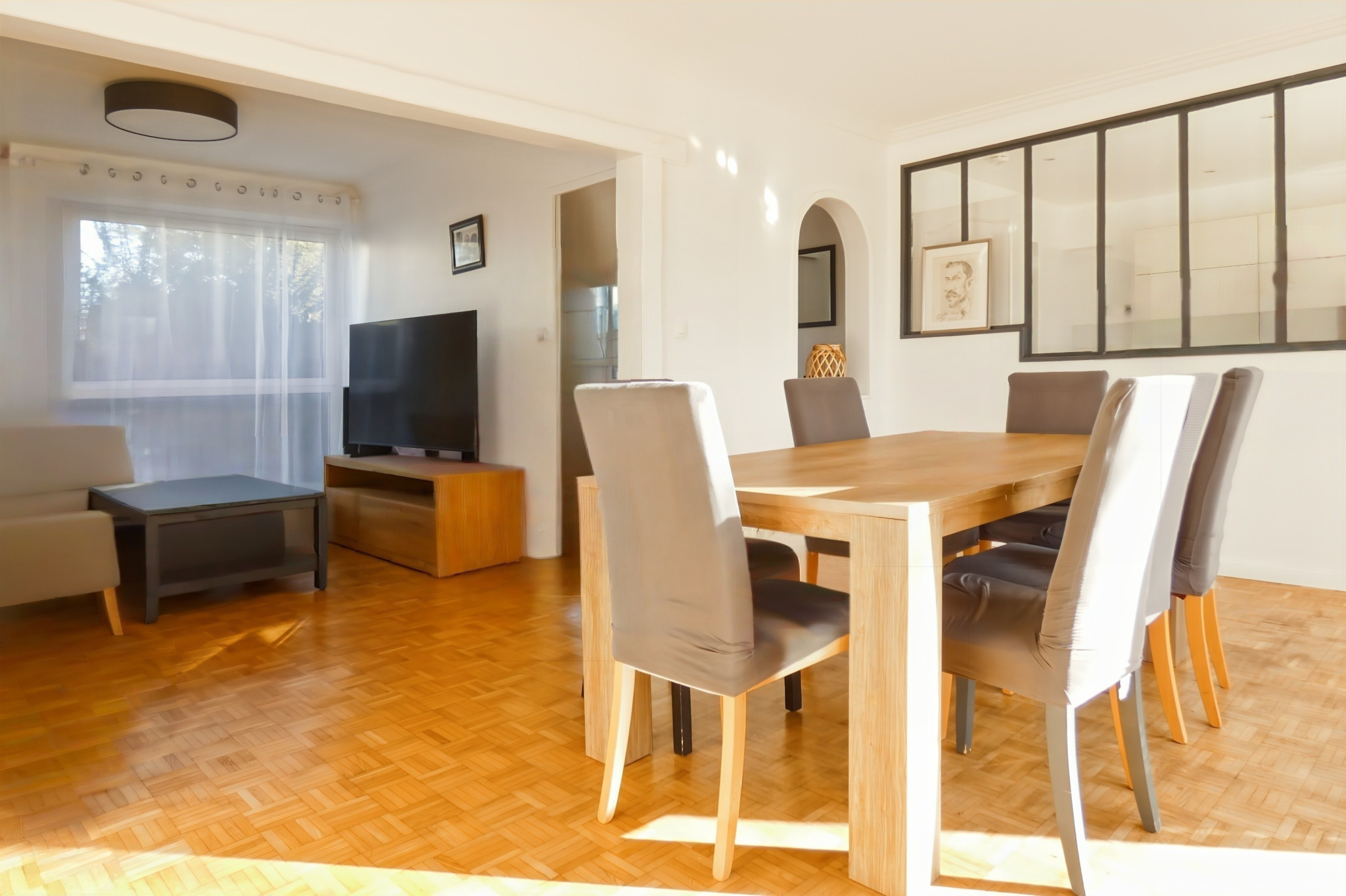...Un grand garage donnant accès sur le devant et l'arrière du jardin...