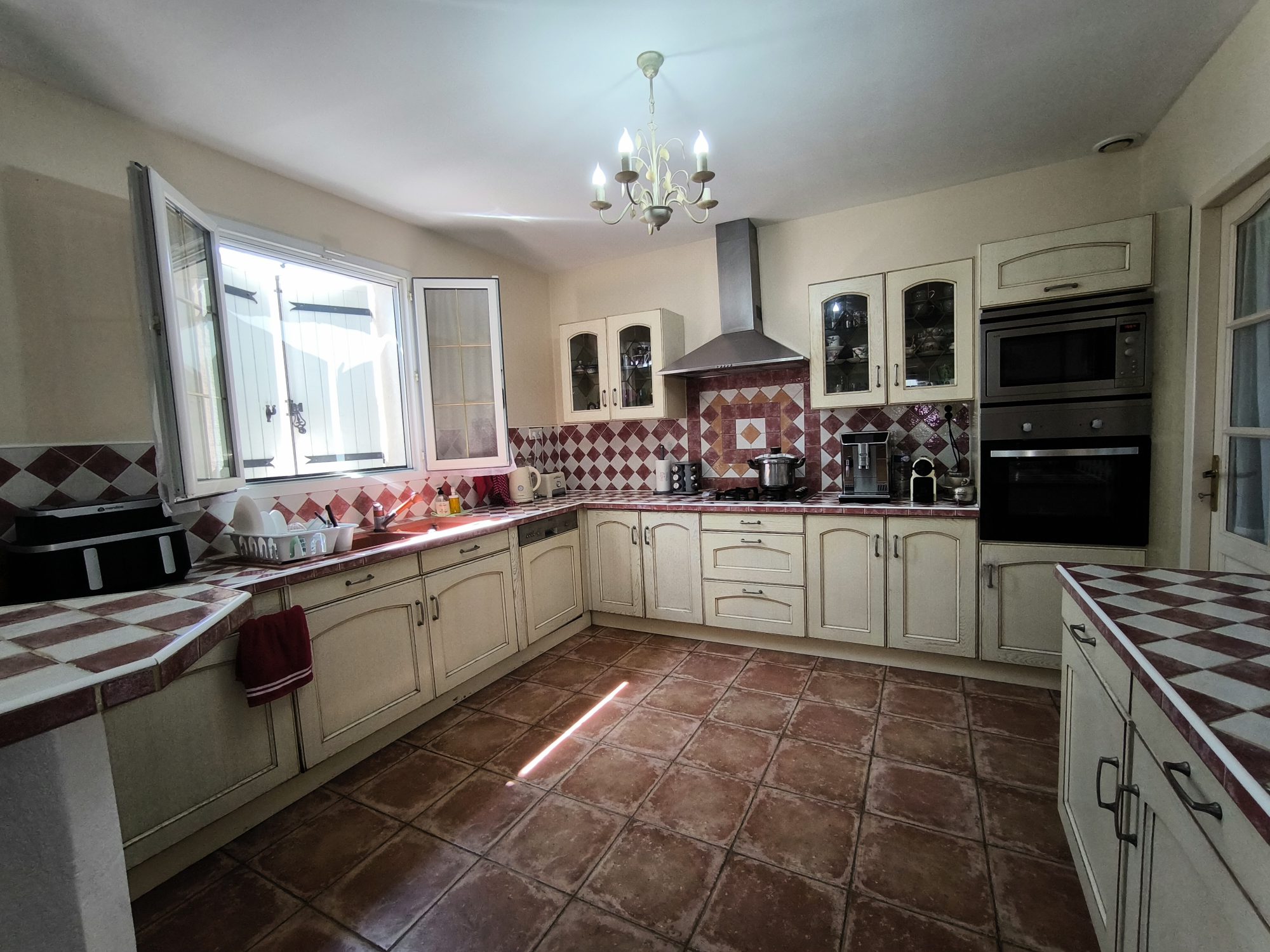 ...Cette maison lumineuse offre un espace de vie chaleureux avec son poêle à bois et sa cuisine...