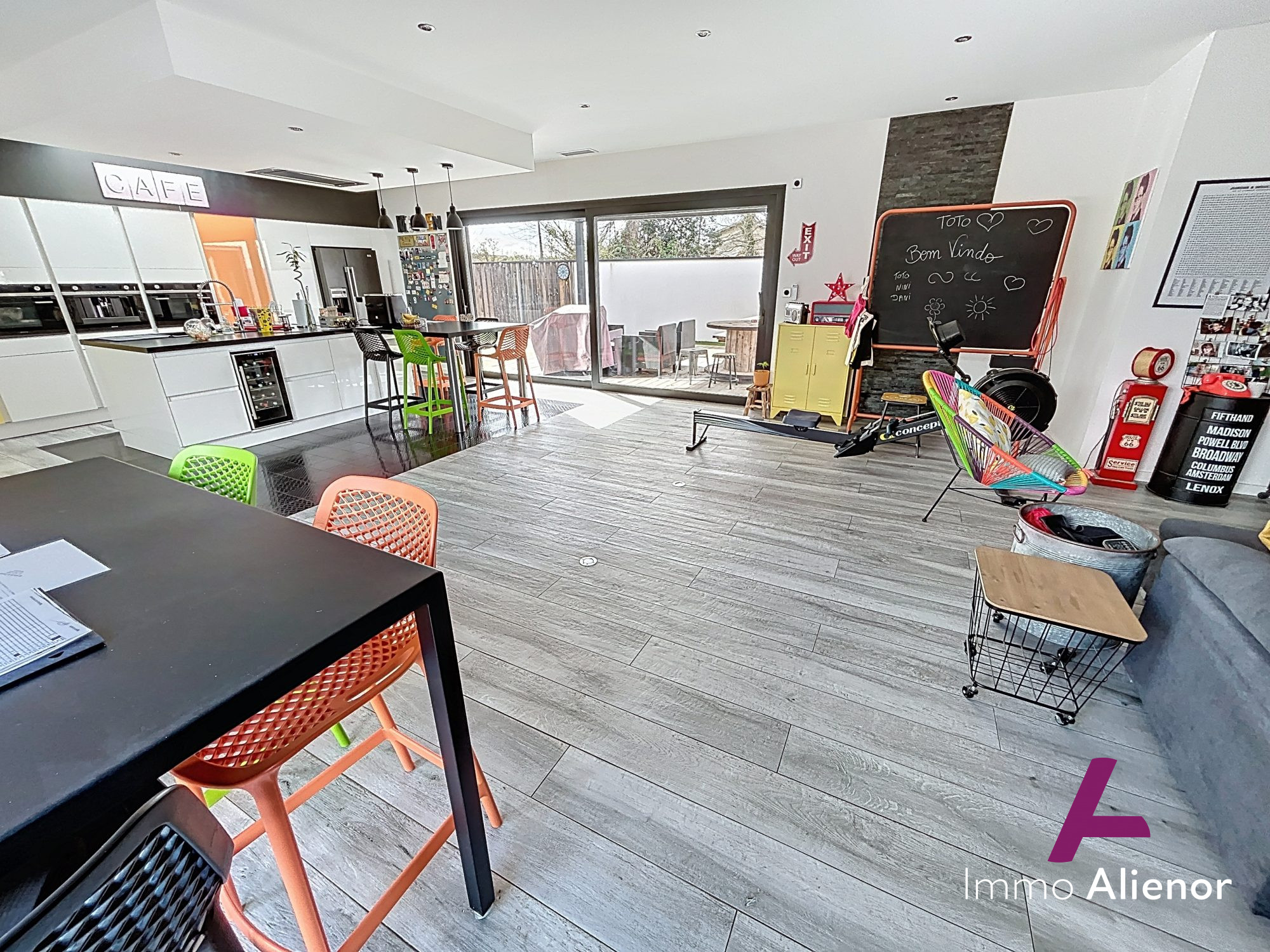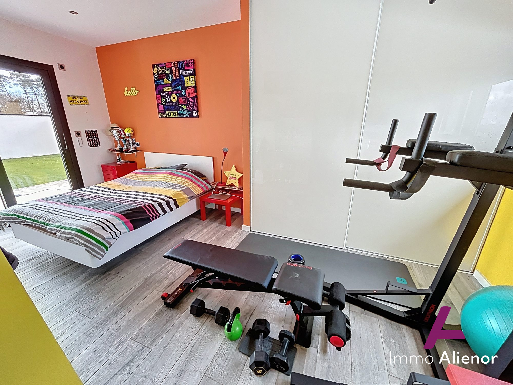 ... avec grand placard donnant sur un spacieux séjour avec cheminée, le tout ouvert sur une cuisine amé...