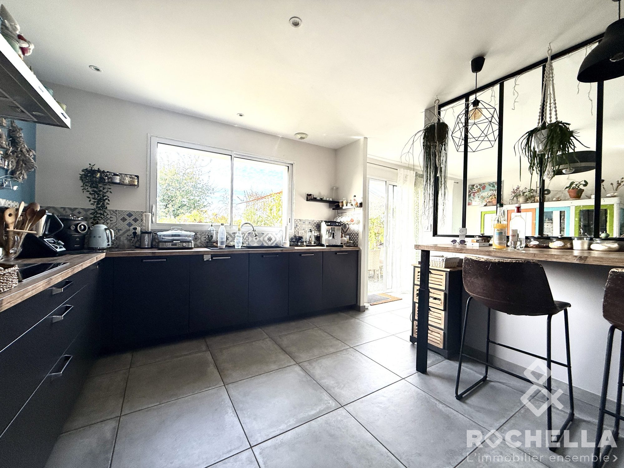 ...Le rez-de-jardin (71 m2 habitables) dispose d'une entrée, un séjour traversant, une cuisine...