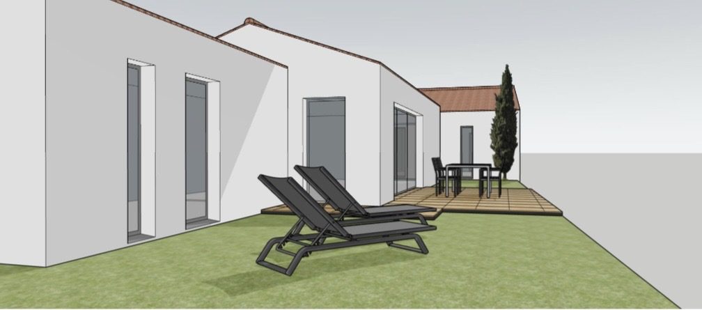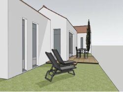 ...La maison s'organise autour d'un séjour avec cuisine ouverte, prolongé par une terrasse...