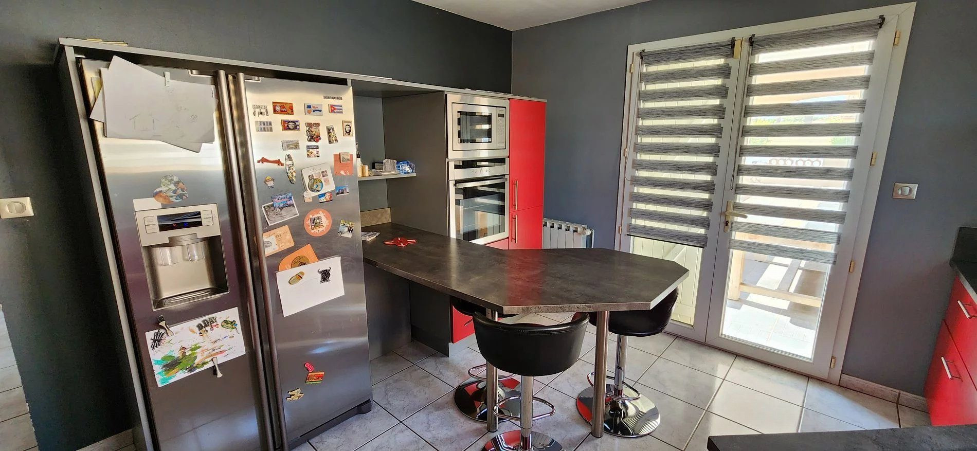 ...Au rez-de-chaussée, séjour avec cuisine aménagée et entièrement équipée, complété par un cellier...