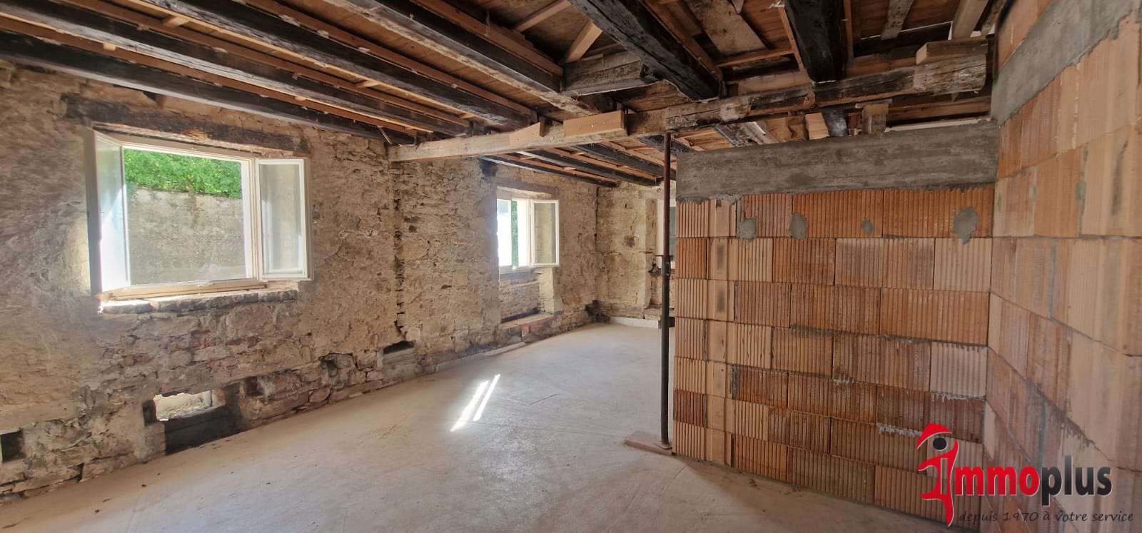 ...A l'étage, 2 chambres à coucher, un balcon, une salle de bains, un wc séparé et des combles...