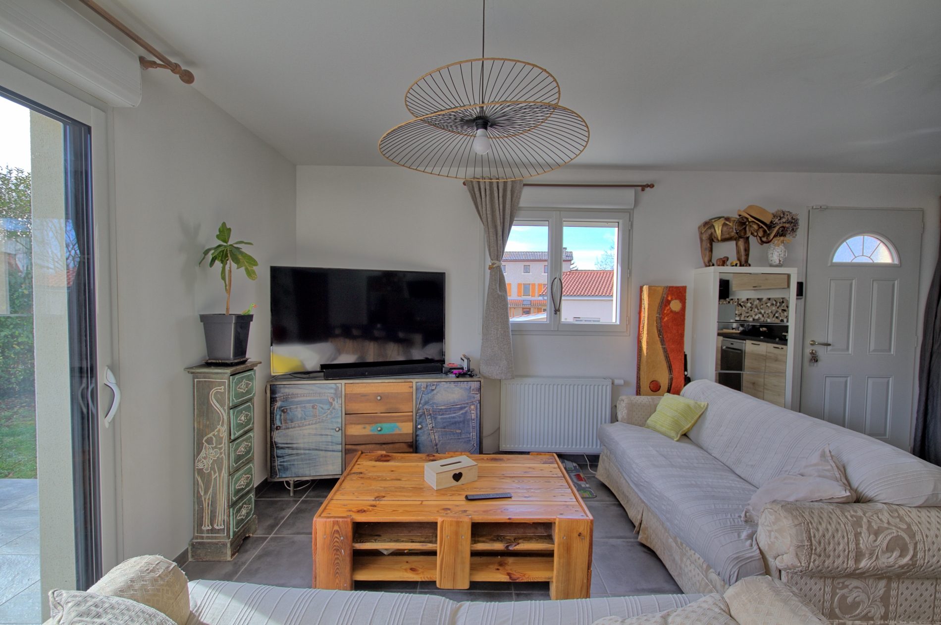 ...Ce plain pied est composé de la manière suivante :Entrée avec placard, pièce de vie avec cuisine...
