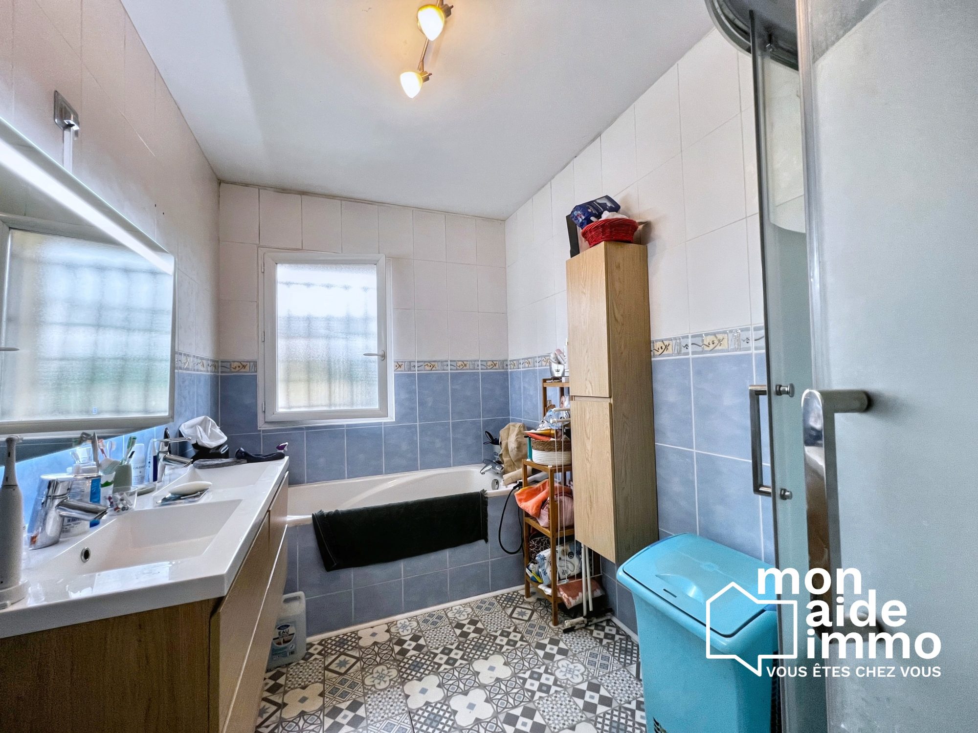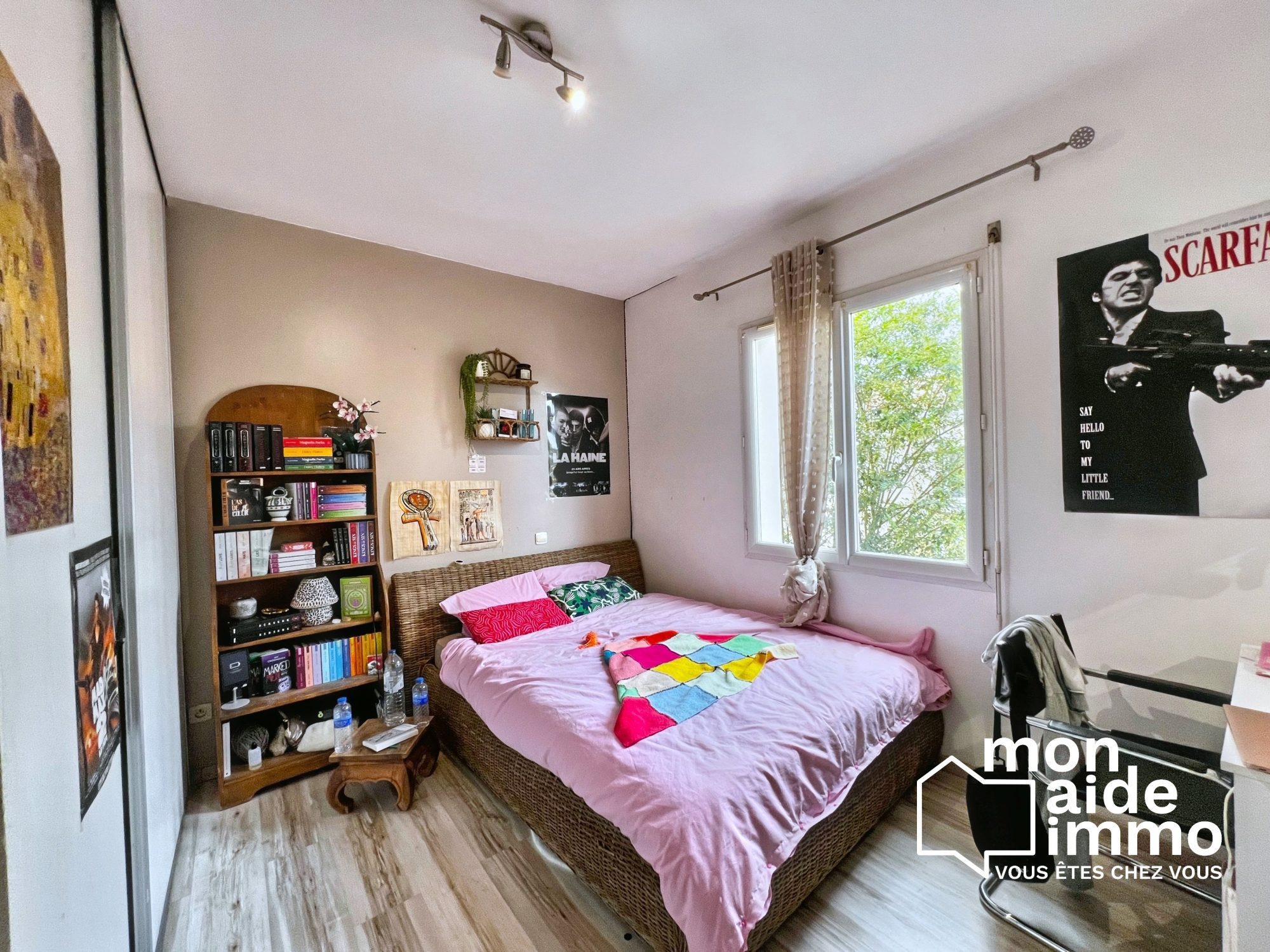 ... 2 chambres, une mezzanine, une pièce de vie donnant sur le jardin paysagé d'environ 85 m2, Cellier-...