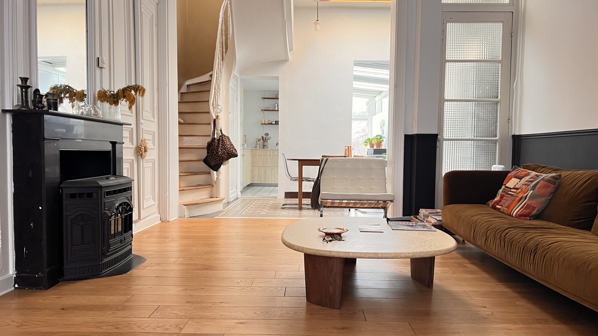 ...Au rez-de-chaussée, elle se compose d'un agréable salon-séjour, bénéficiant de volumes...