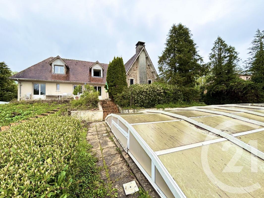 ...A l'étage : deux chambres, une mezzanine une salle d'eau avec WC - Garage - véranda - 2 abris...