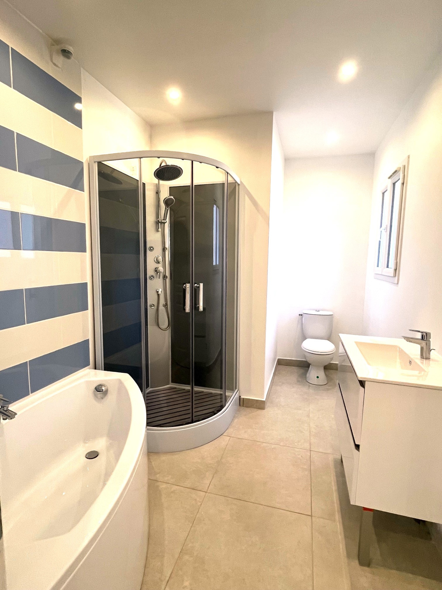...La belle terrasse arrière de 120 M2 donne sur le RDC qui offre une spacieuse entrée de 8 m2avec...