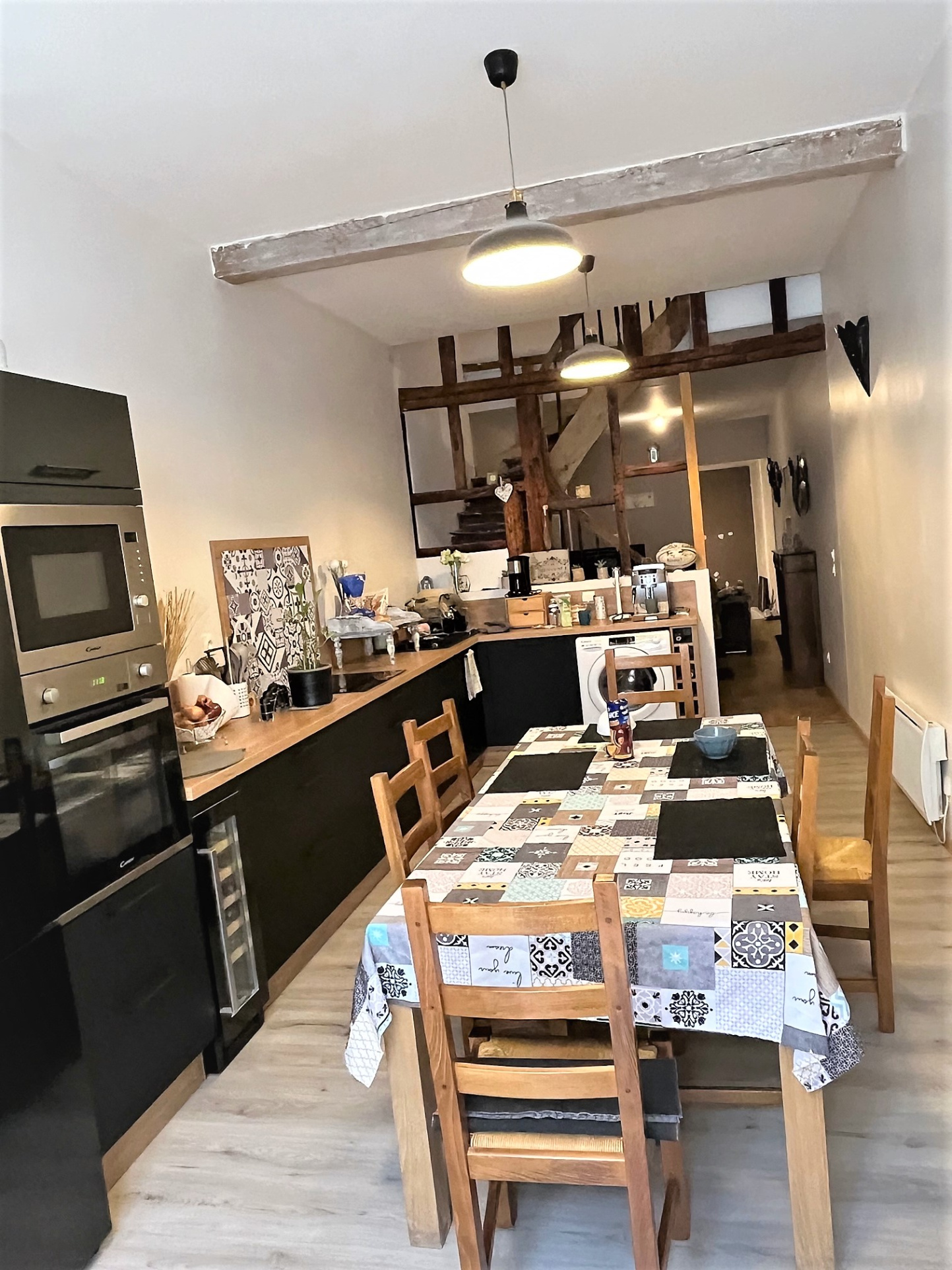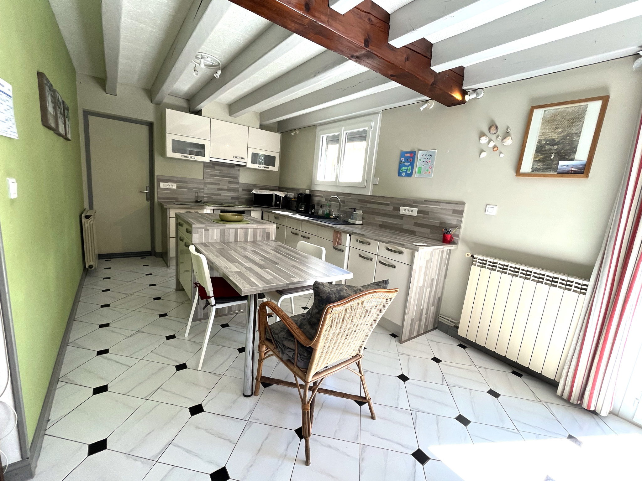 ... : vaste séjour / cuisine équipée de 90m2 tournés vers le jardin, foyer fermé qui amène la chaleur d...