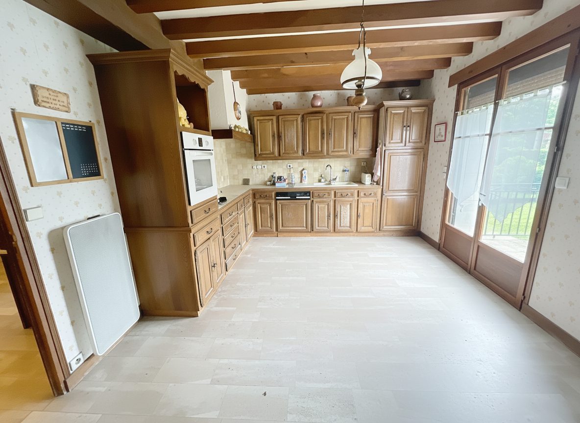 ...Elle vous accueille par une belle pièce à vivre chaleureuse, sublimée par une cheminée équipée...