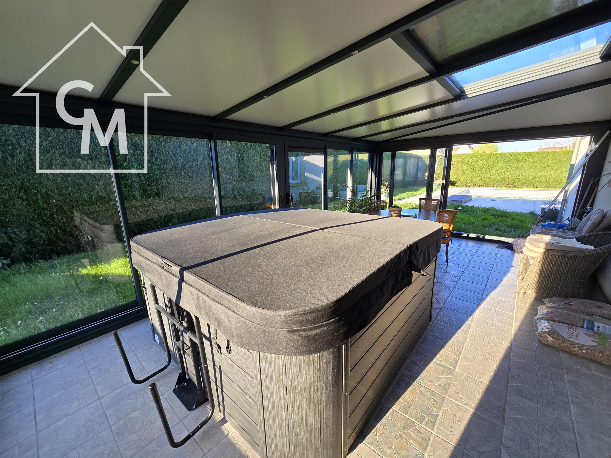 ...Véranda et piscine intérieure chauffée offrant un bel espace de vie et de détente supplémentaire...