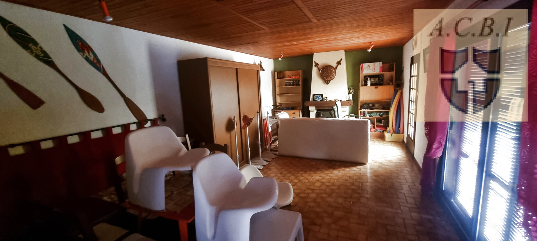 ... Maison d'habitation de plain-pied composée d'un salon avec cheminée, une cuisine ouverte sur salle ...