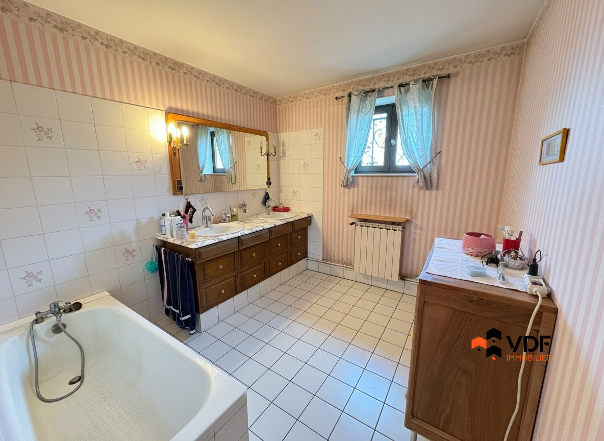 ...L'habitation, sur caves voutées, comprend :Au premier étage une belle PIÈCE DE VIE de 43...