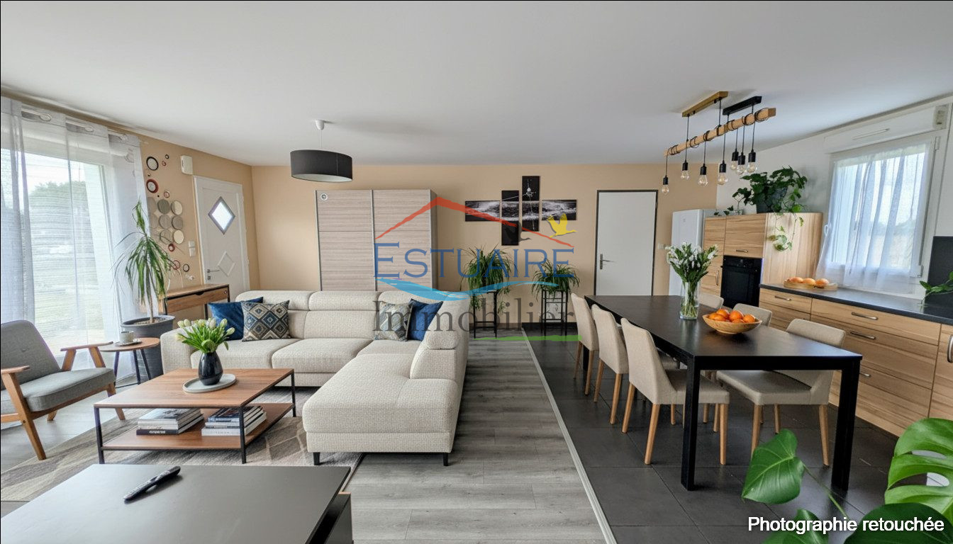...Cette maison vous offre une spacieuse pièce de vie lumineuse, grâce à sa double exposition, une...