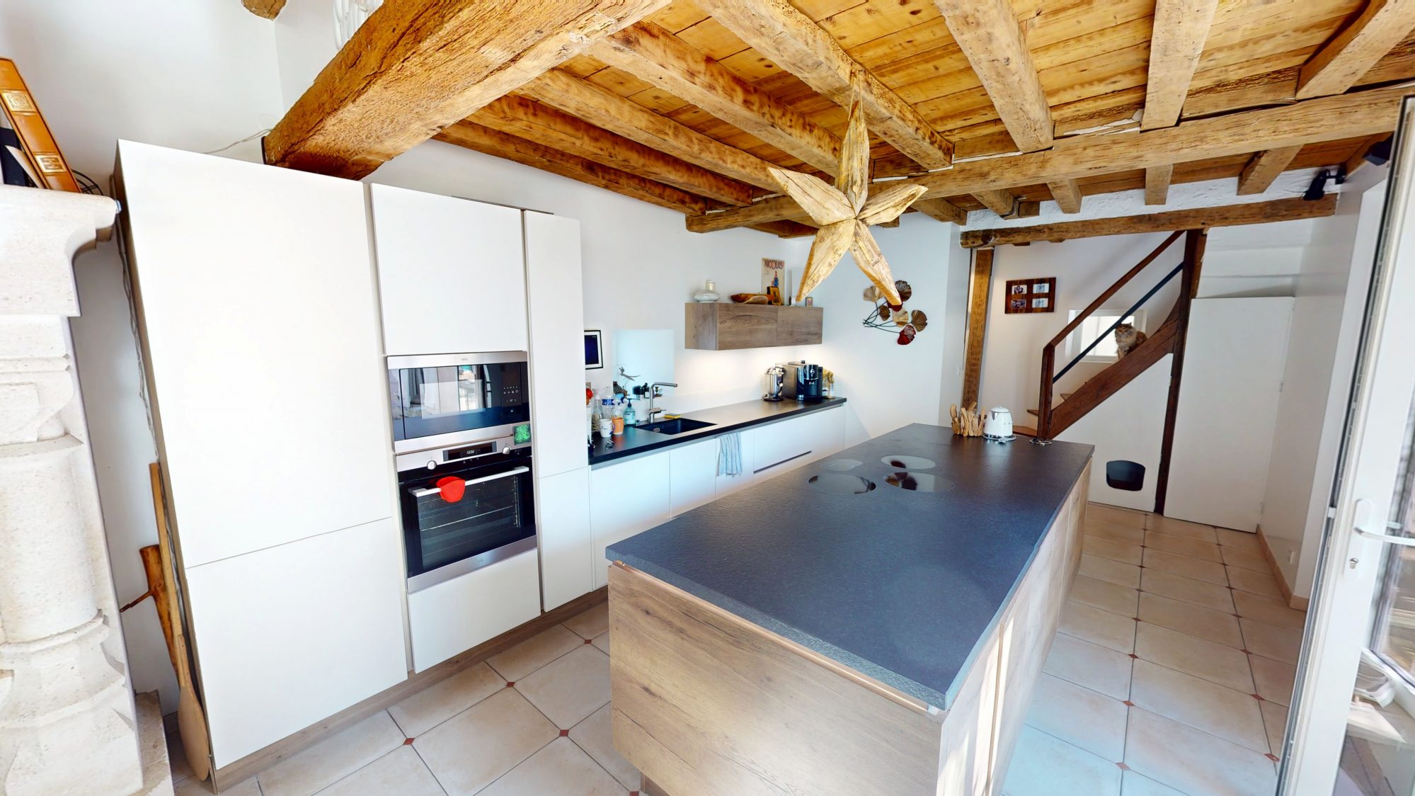 ...Dès l'entrée, la maison dévoile de beaux volumes et une atmosphère pleine de caractère...