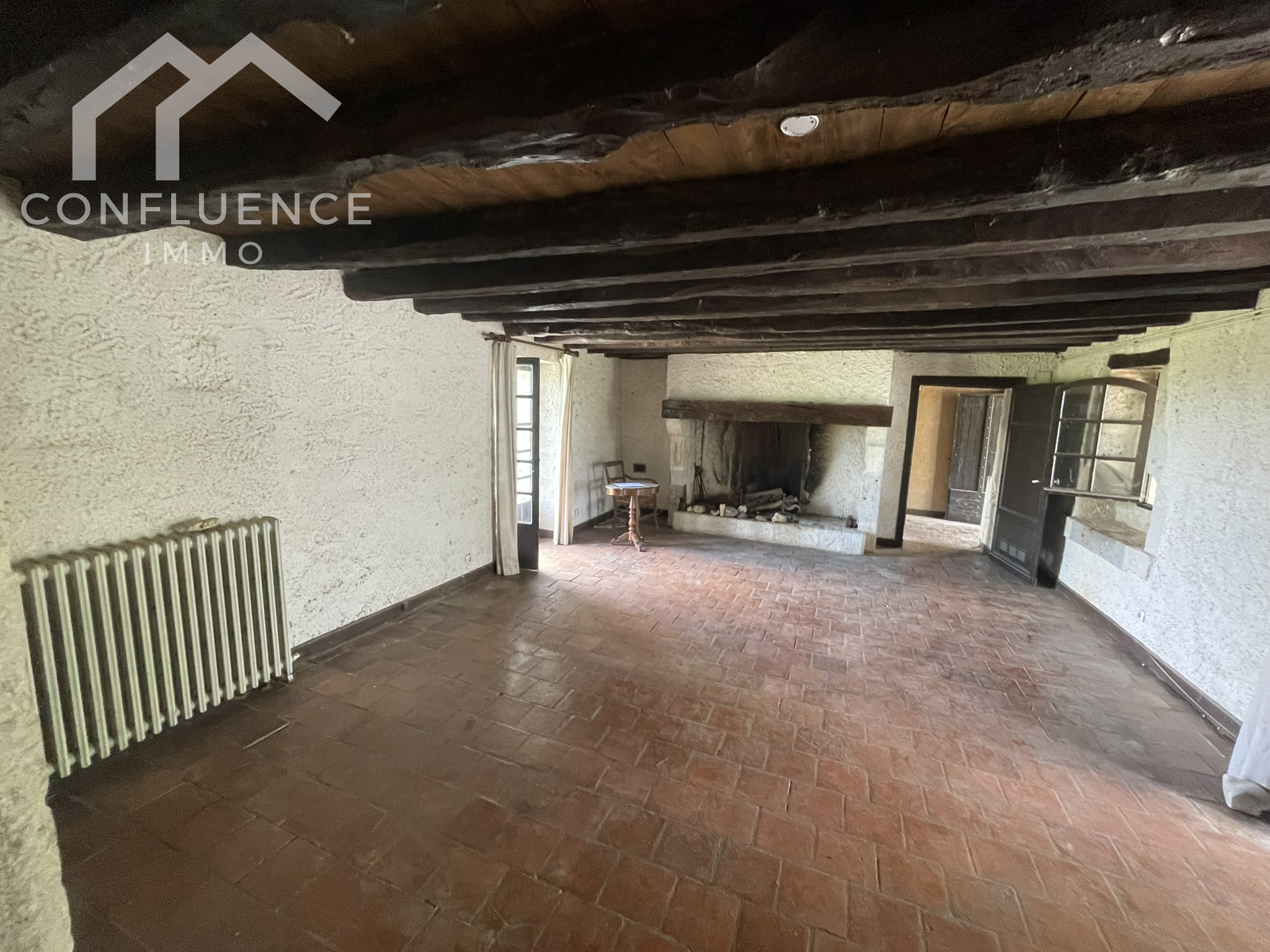 ...Cette bâtisse de caractère offre environ 100 m² habitables actuellement, comprenant :Un séjour,...