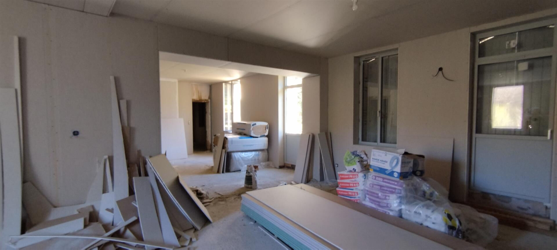 ...La rénovation récemment entamée, notamment sur la toiture, les menuiseries et le doublage...