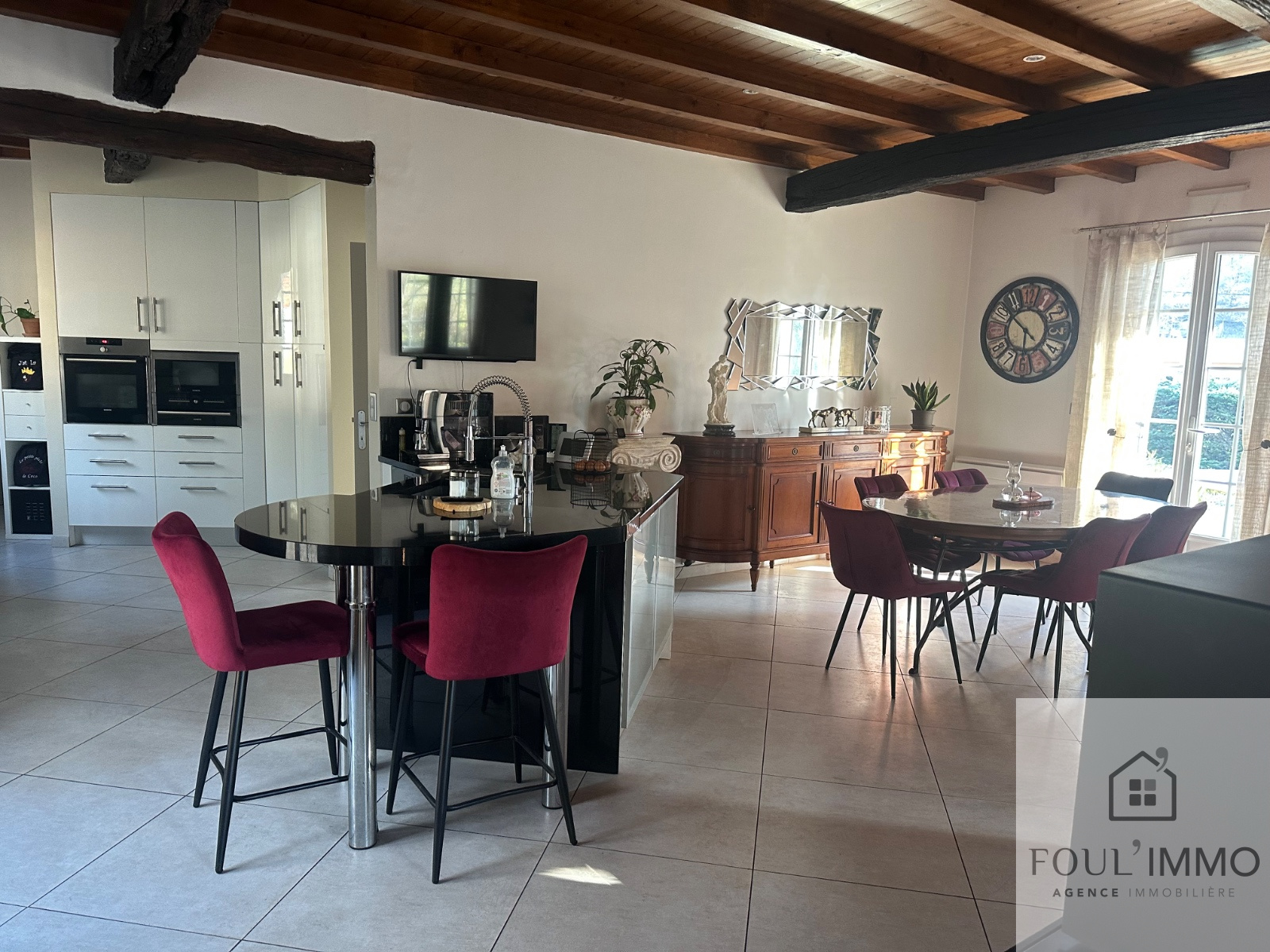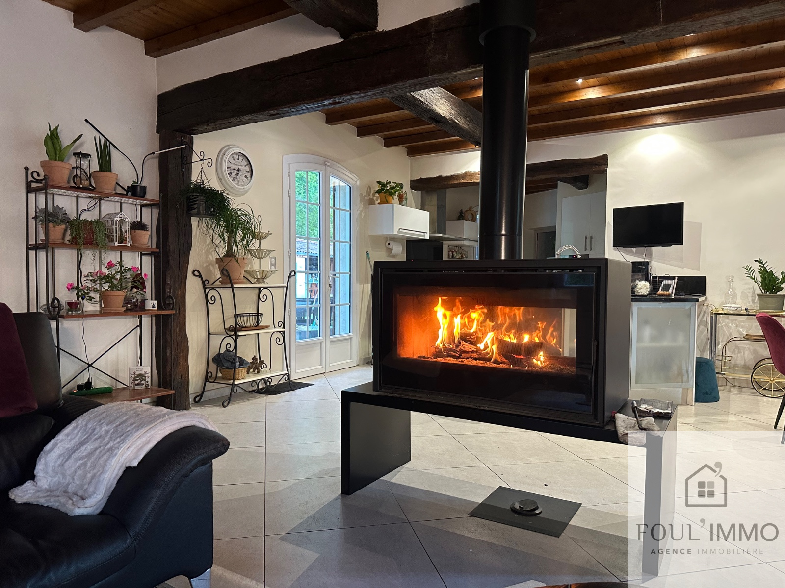 ...Une pièce de vie chaleureuse et traversante d'environ 65 m2 composée d'une cuisine aménagée et...