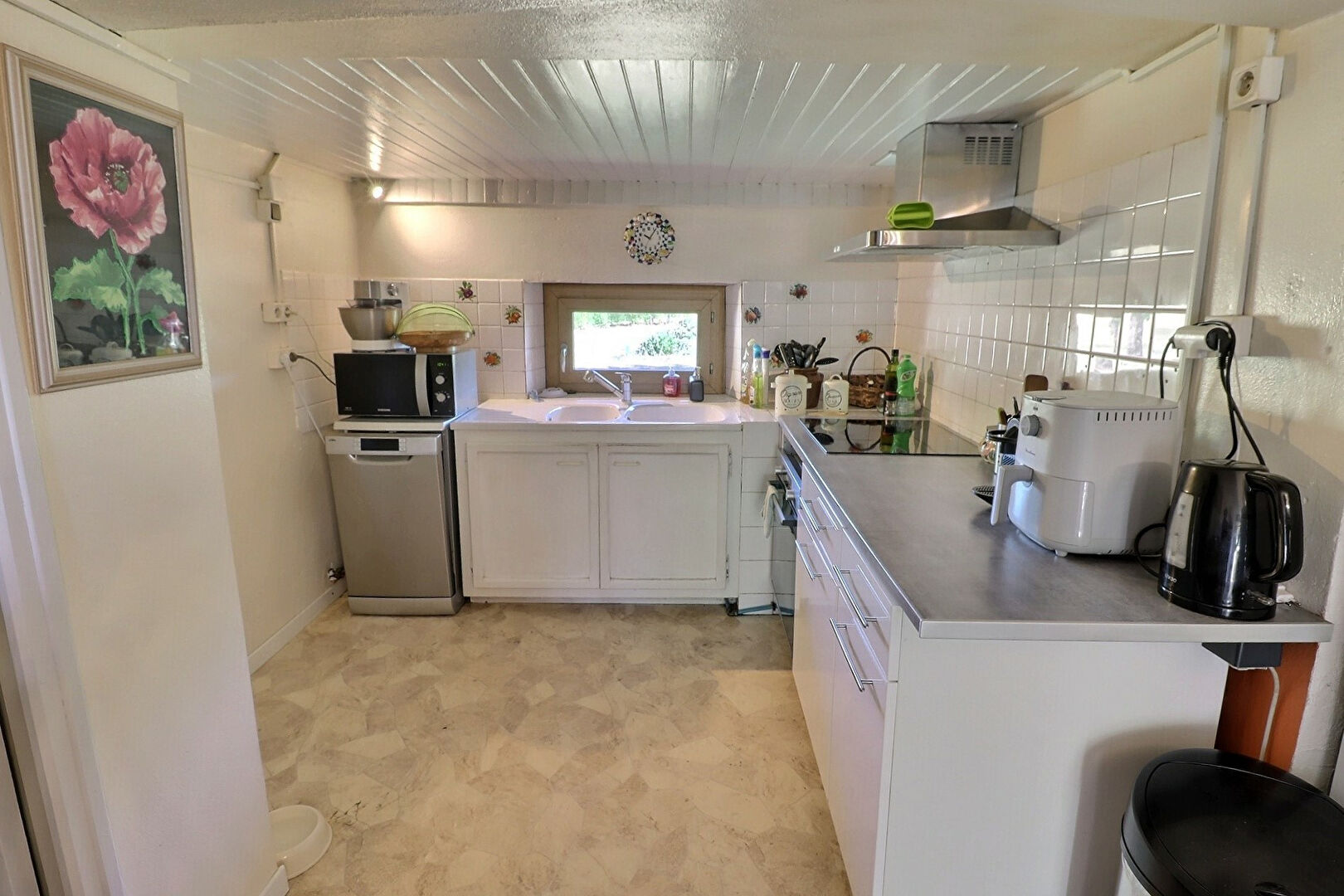 ...Elle dispose d'un garage et d'une cuisine d'été donnant sur un petit espace extérieur...