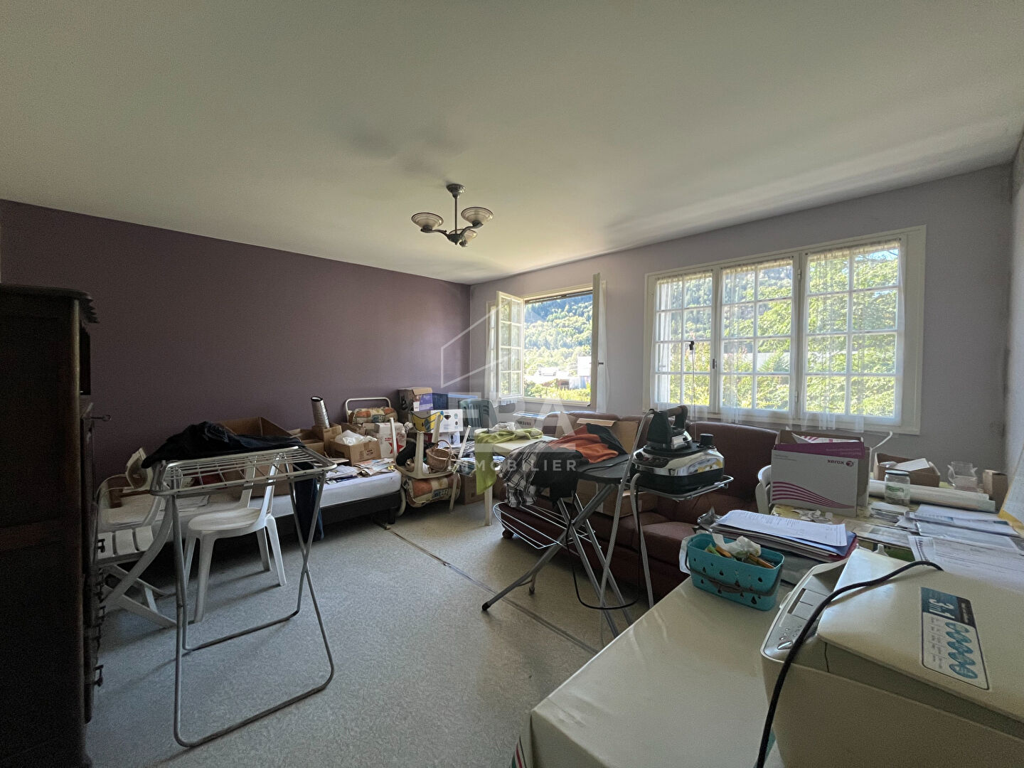 ... jolie salle de sport équipée et un grand bureau avec baies vitrées.