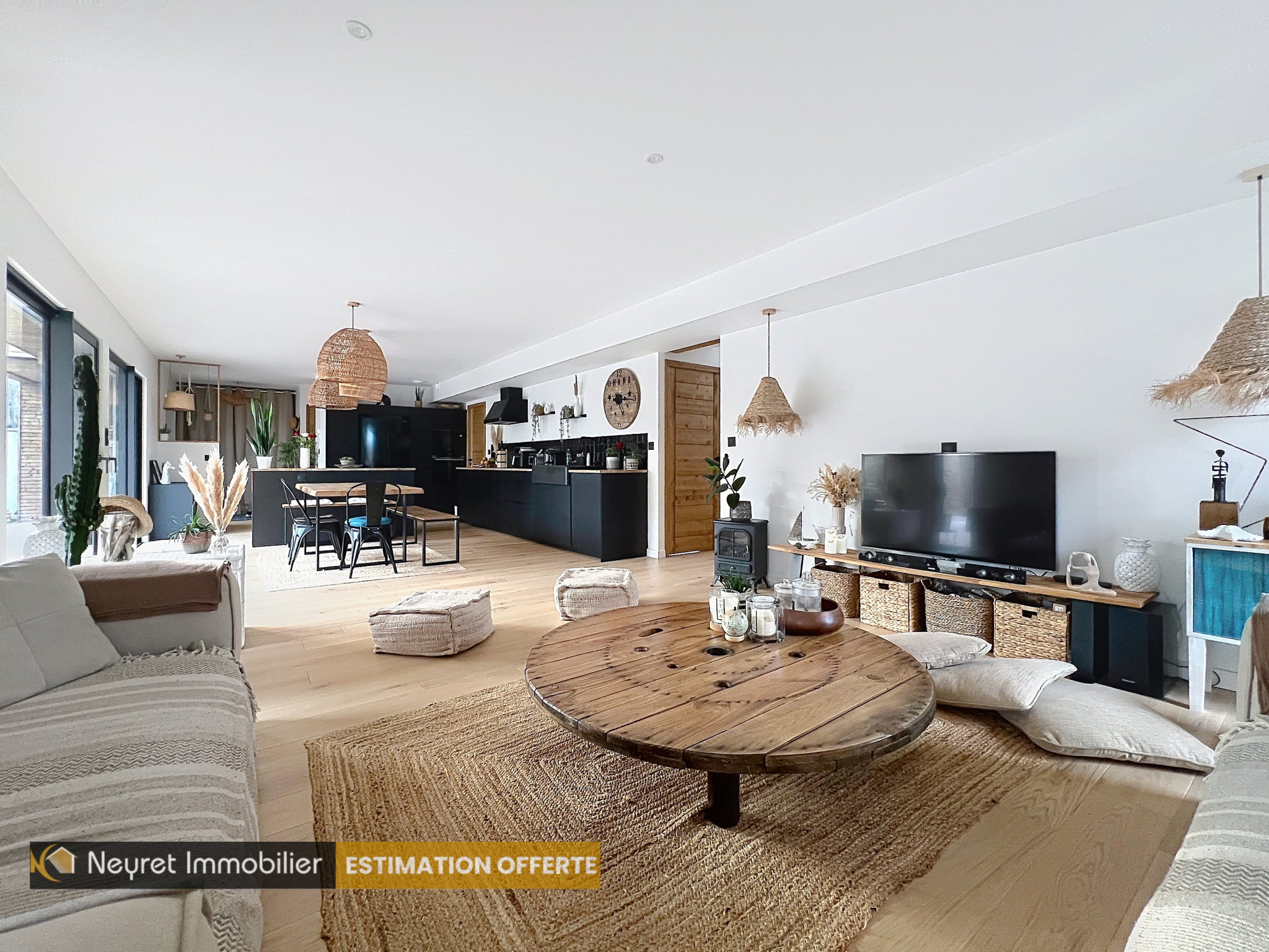...La maison s'articule autour de sa spacieuse pièce de vie lumineuse et sa cheminée qui crée une...