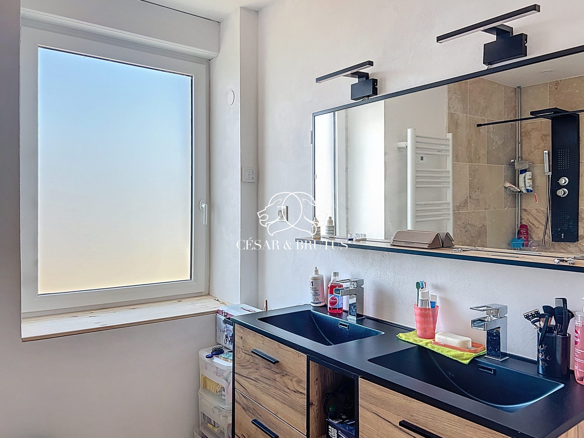 ...Au premier étage 2 grandes suites parentales, l'une avec salle d'eau et l'autre avec salle de...