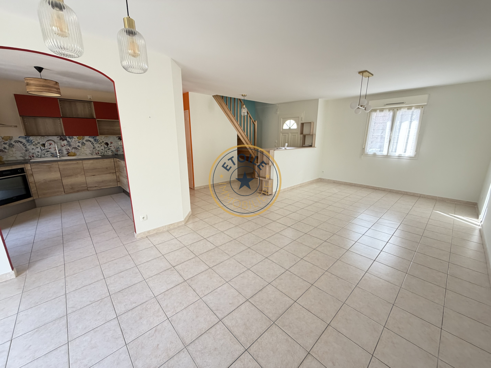 ...Intérieur- Pièce de vie lumineuse intégrant une cuisine récente aménagée et équipée...