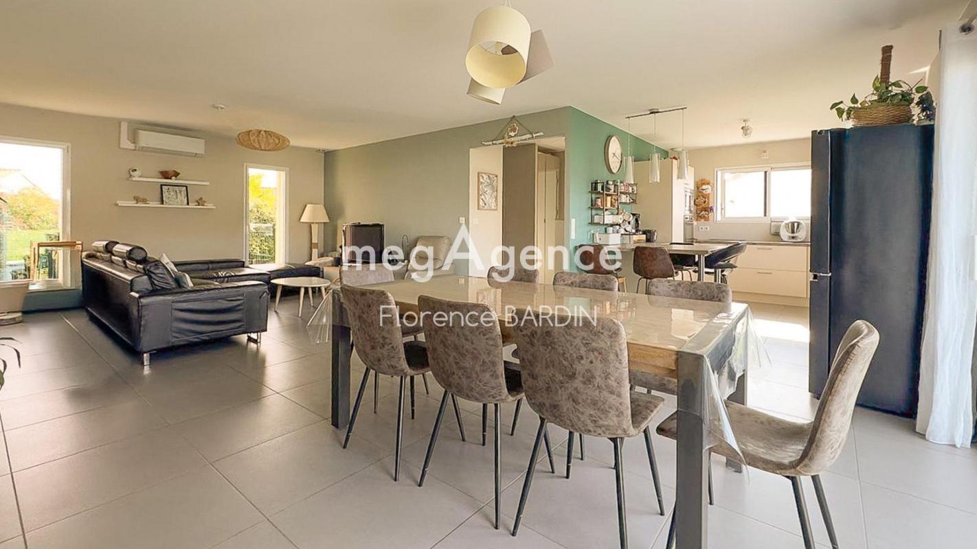 ... un séjour lumineux de 27 m², une cuisine équipée donnant sur la terrasse, un WC. À l'étage,une sall...