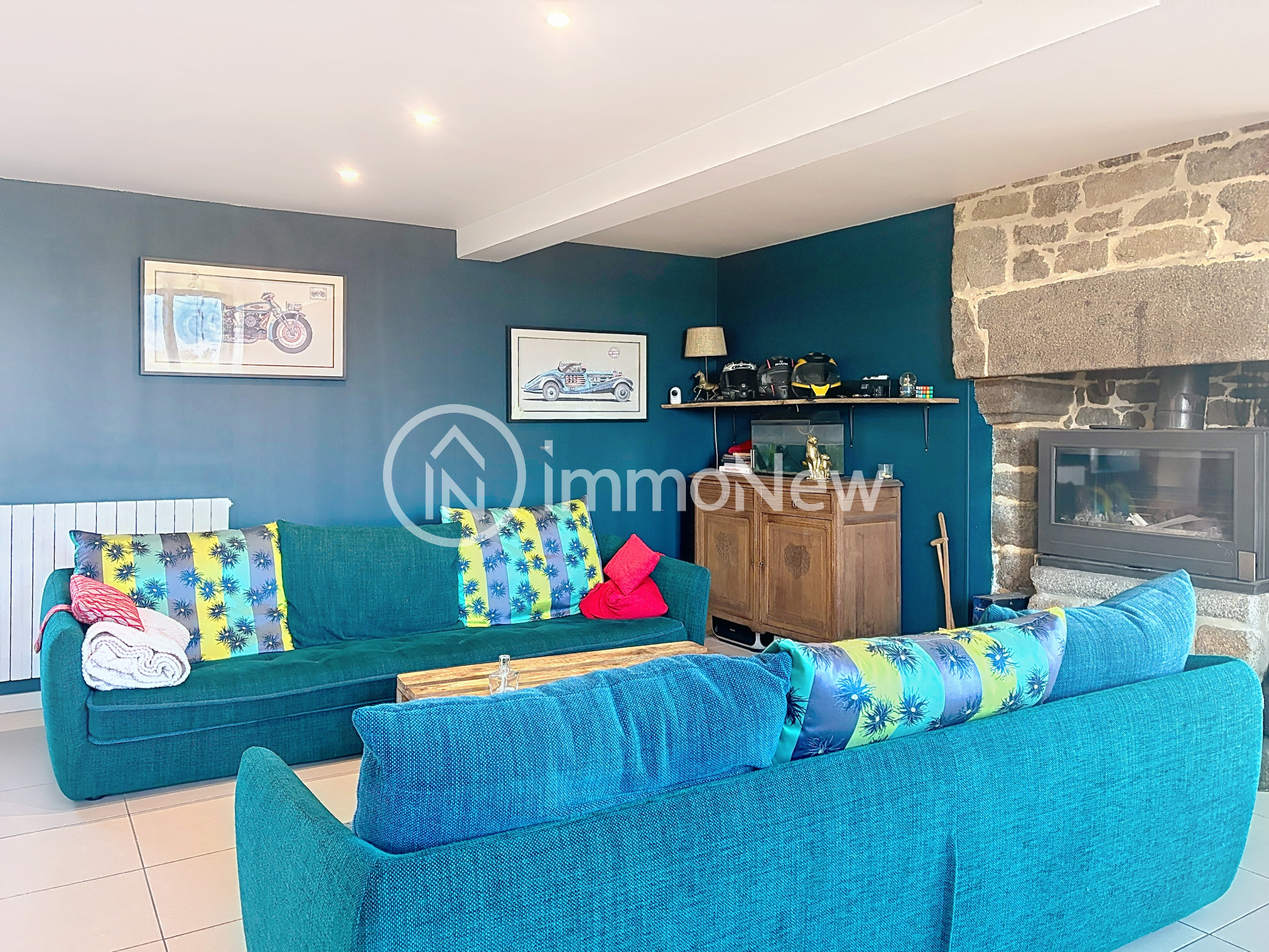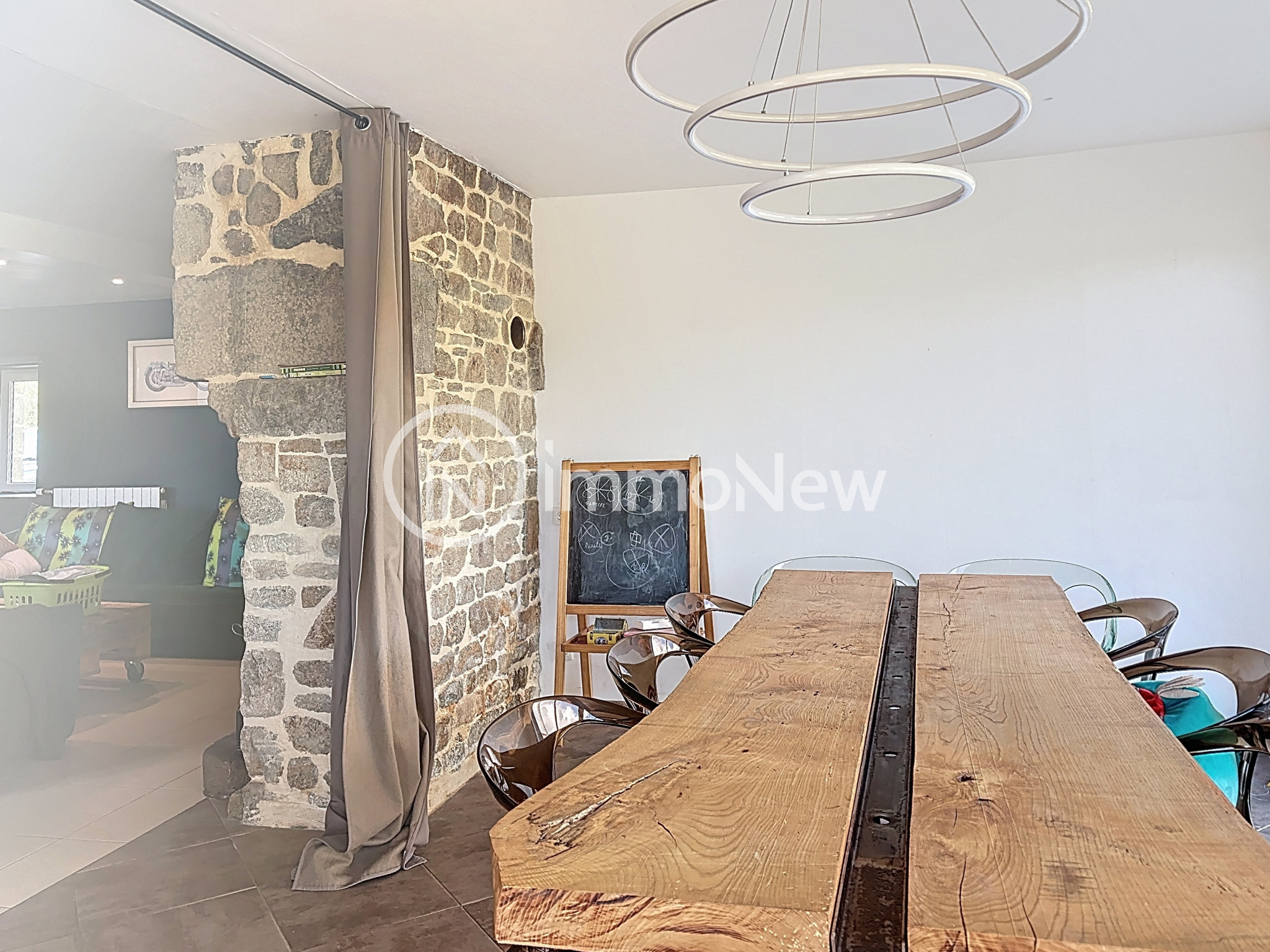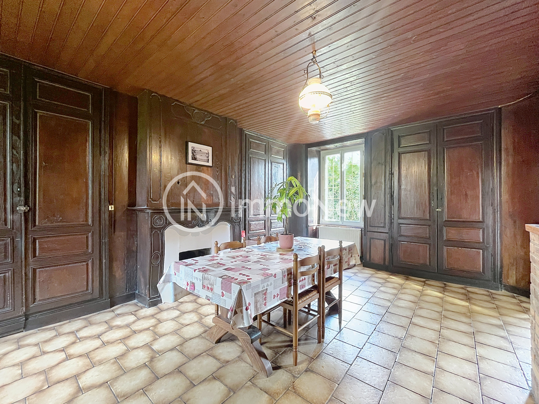 ...Au rez-de-chaussée, vous trouverez un spacieux salon agrémenté d'un poêle, une salle à manger...