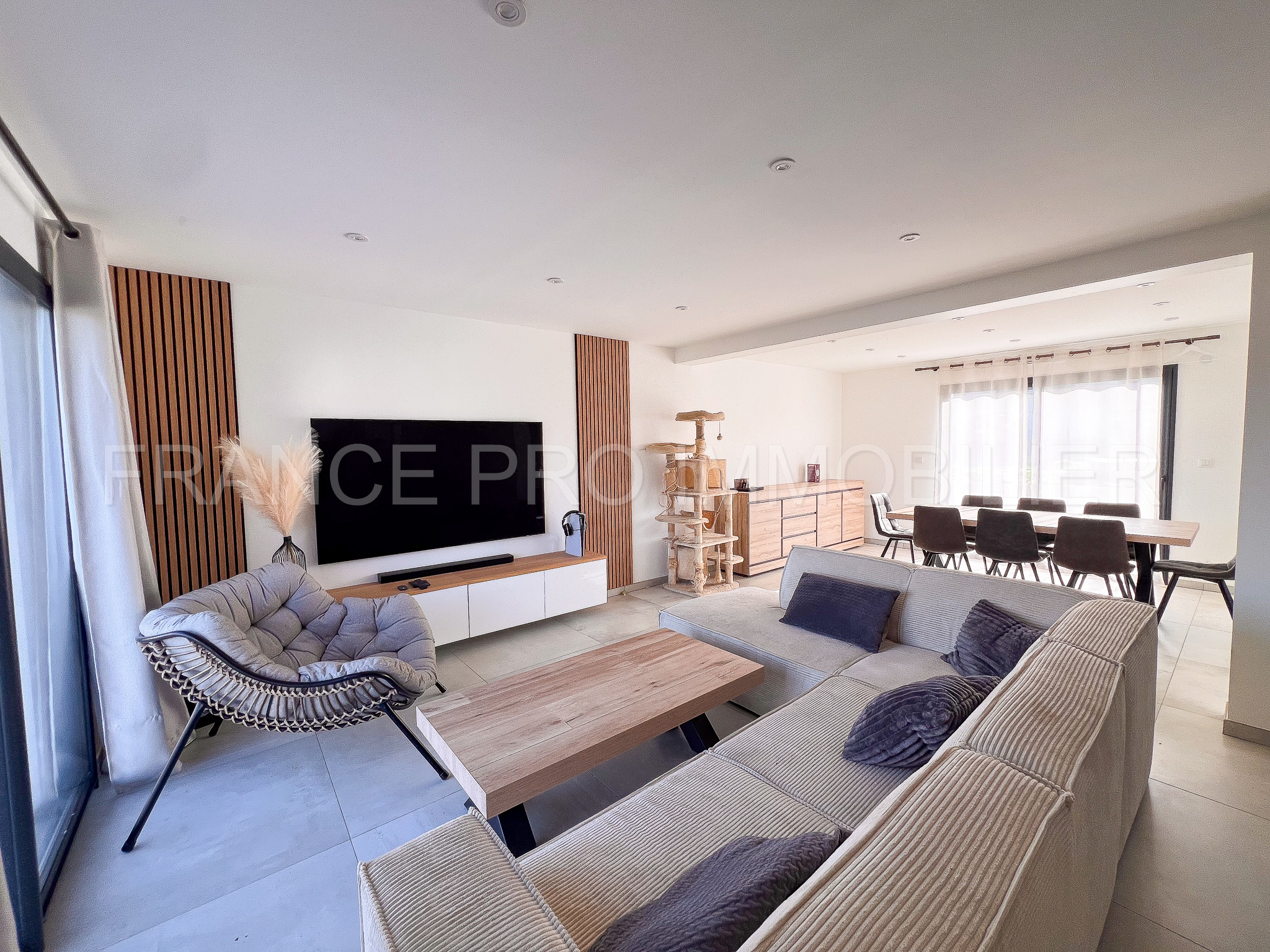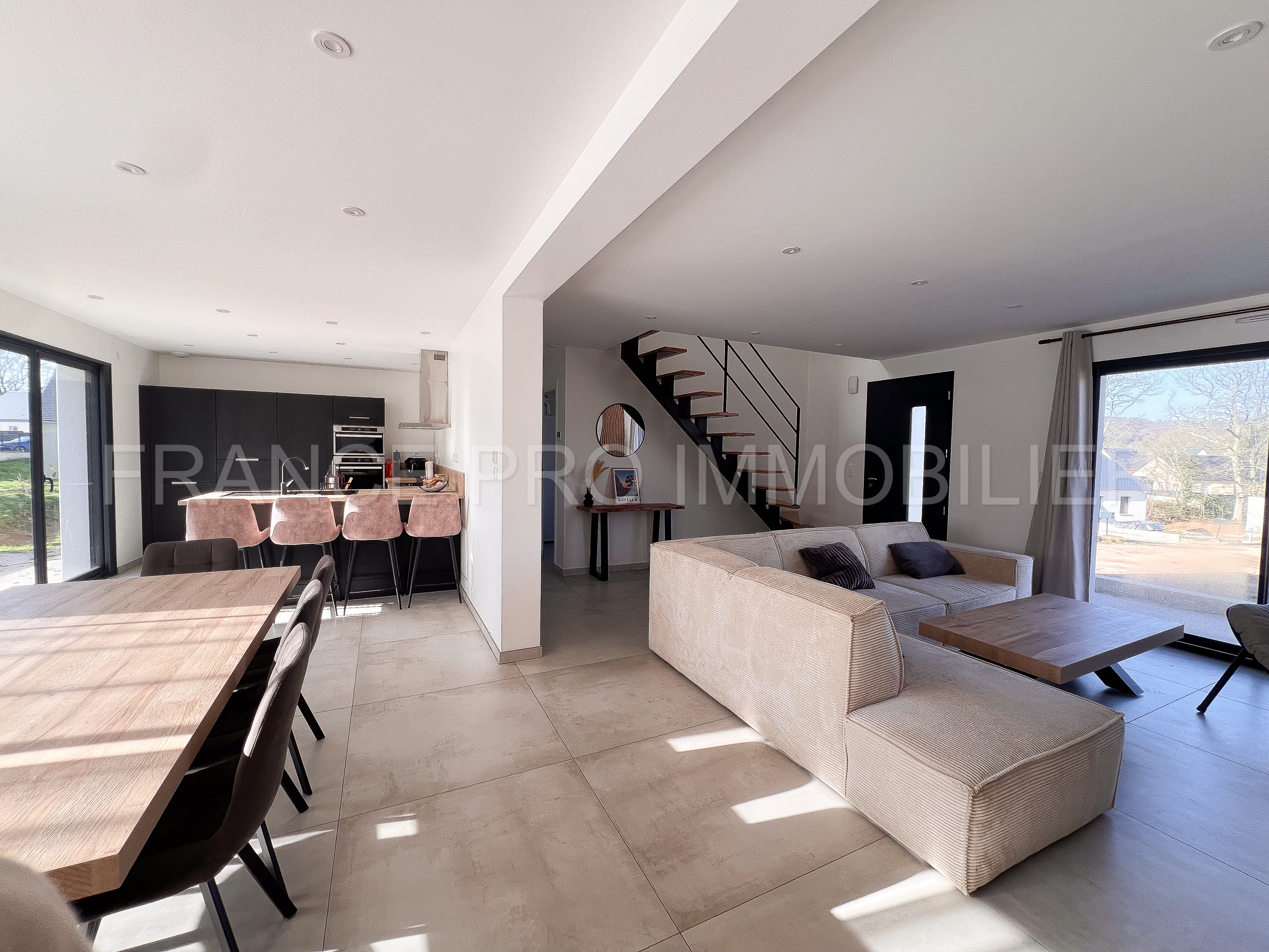 ...Au rez-de-chauss?e, vous d?couvrez une vaste pi?ce de vie baign?e de lumi?re avec ses grandes...