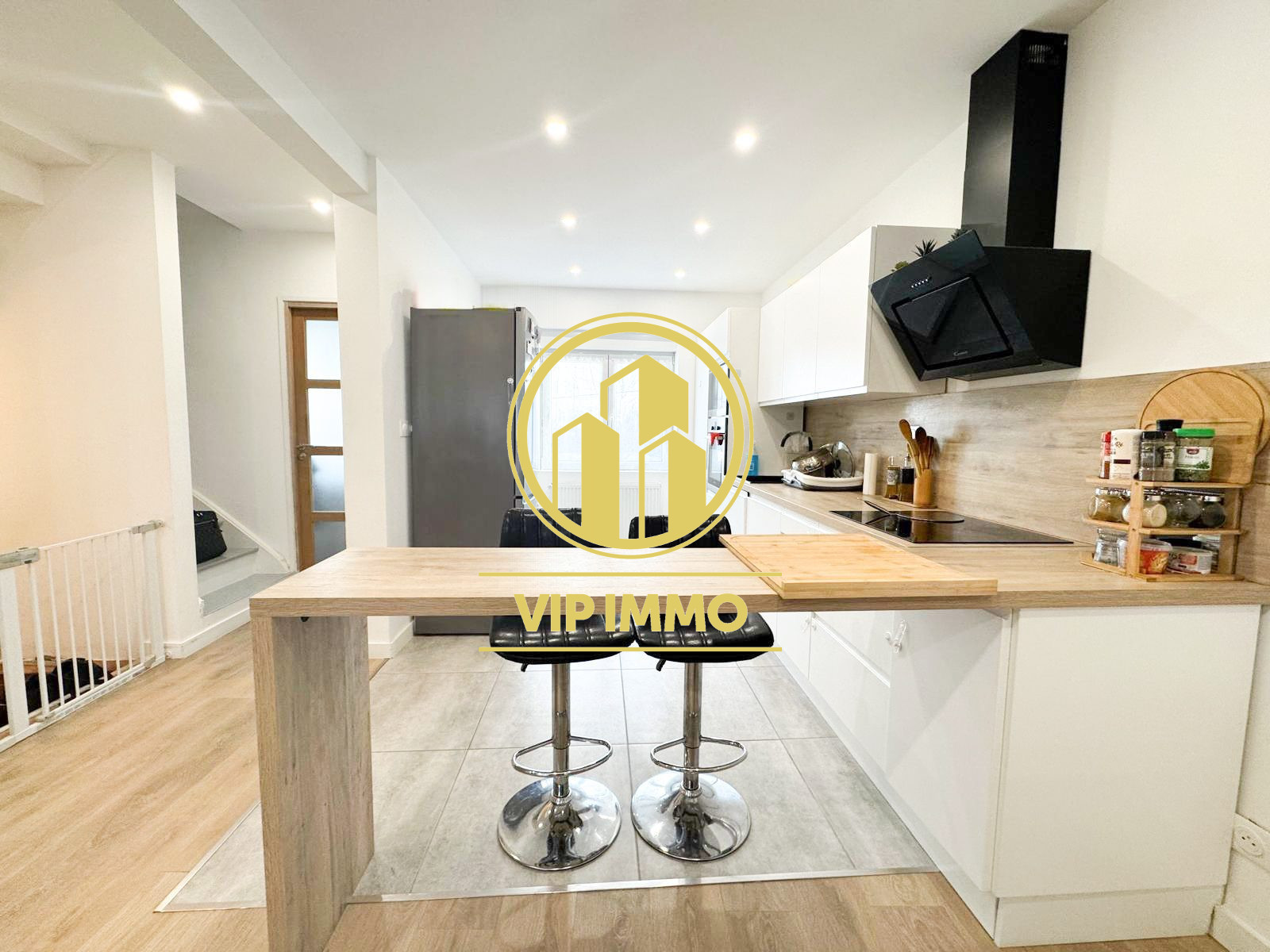... Barres, transports (tramway, bus) et axes rapides, découvrez cette maison semi bel étage entièremen...