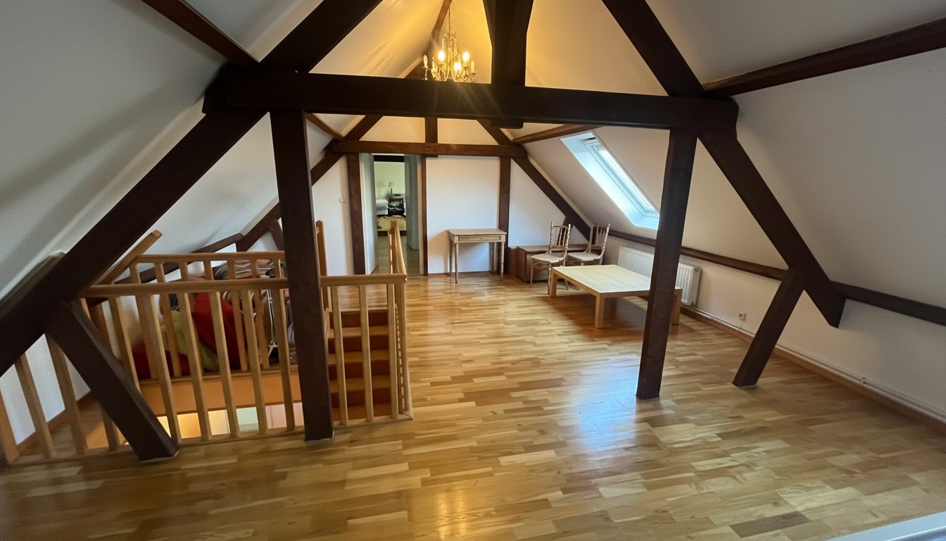 ...Séjour de 25 m2, cuisine et salle de bains en rdc...