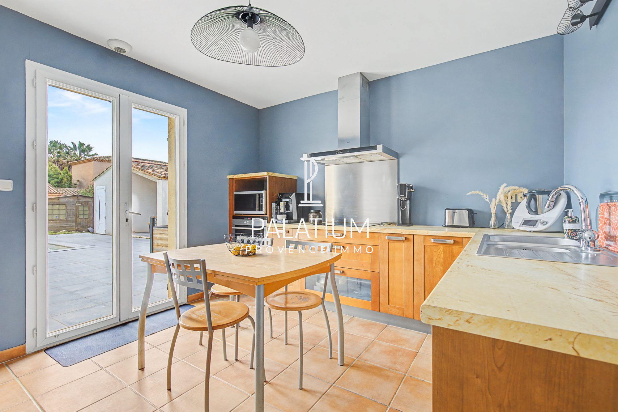 ... son séjour lumineux agrémenté d'un poêle à granulés, ainsi que sa cuisine moderne et équipée donnan...