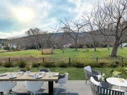 ...Une cuisine équipée, avec îlot central et totalement équipée avec vue sur le jardin (terrain...