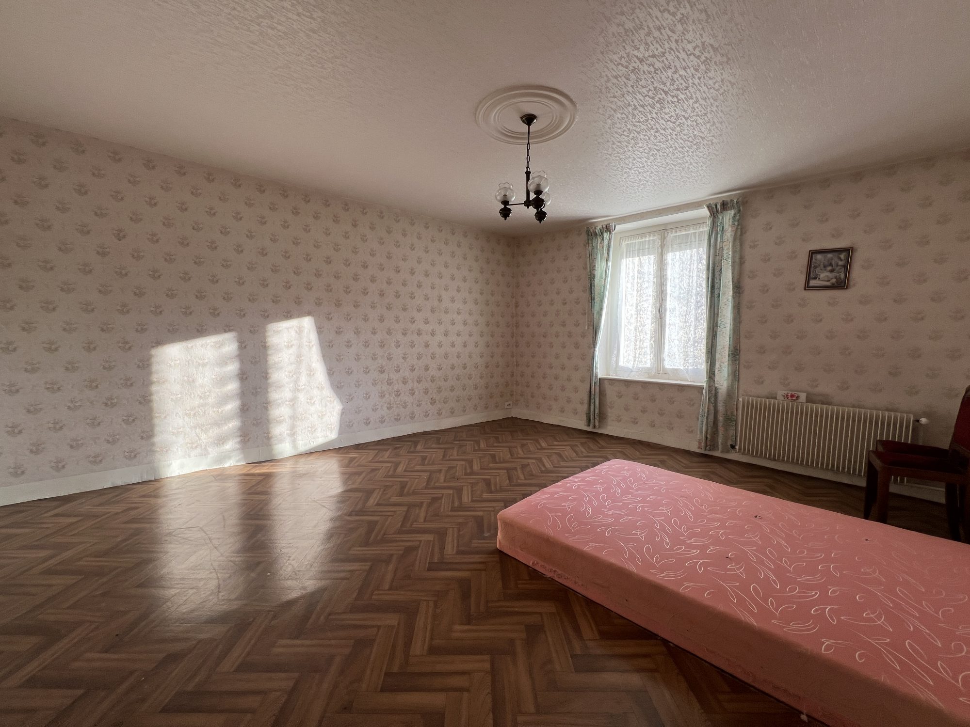 ...Au premier étage: trois chambres, une salle d'eau, une grande pièce et un w-c...
