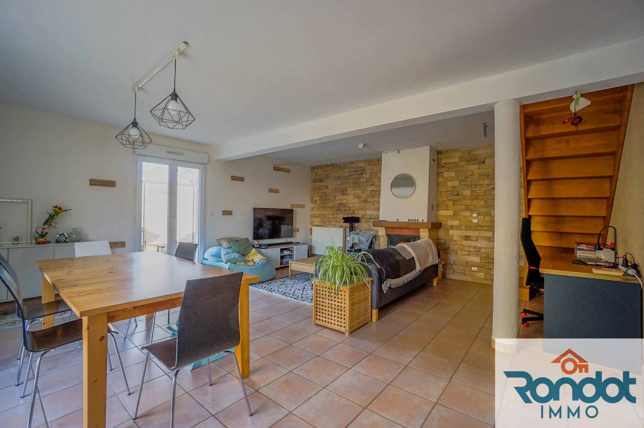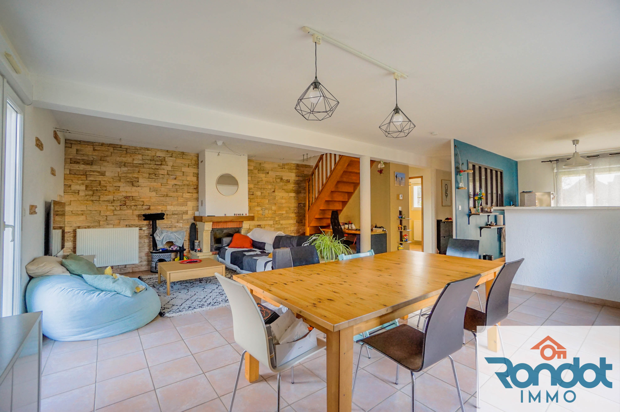 ...Elle se compose au rez-de-chaussée d'une cuisine équipée semi-ouverte sur un large séjour avec...