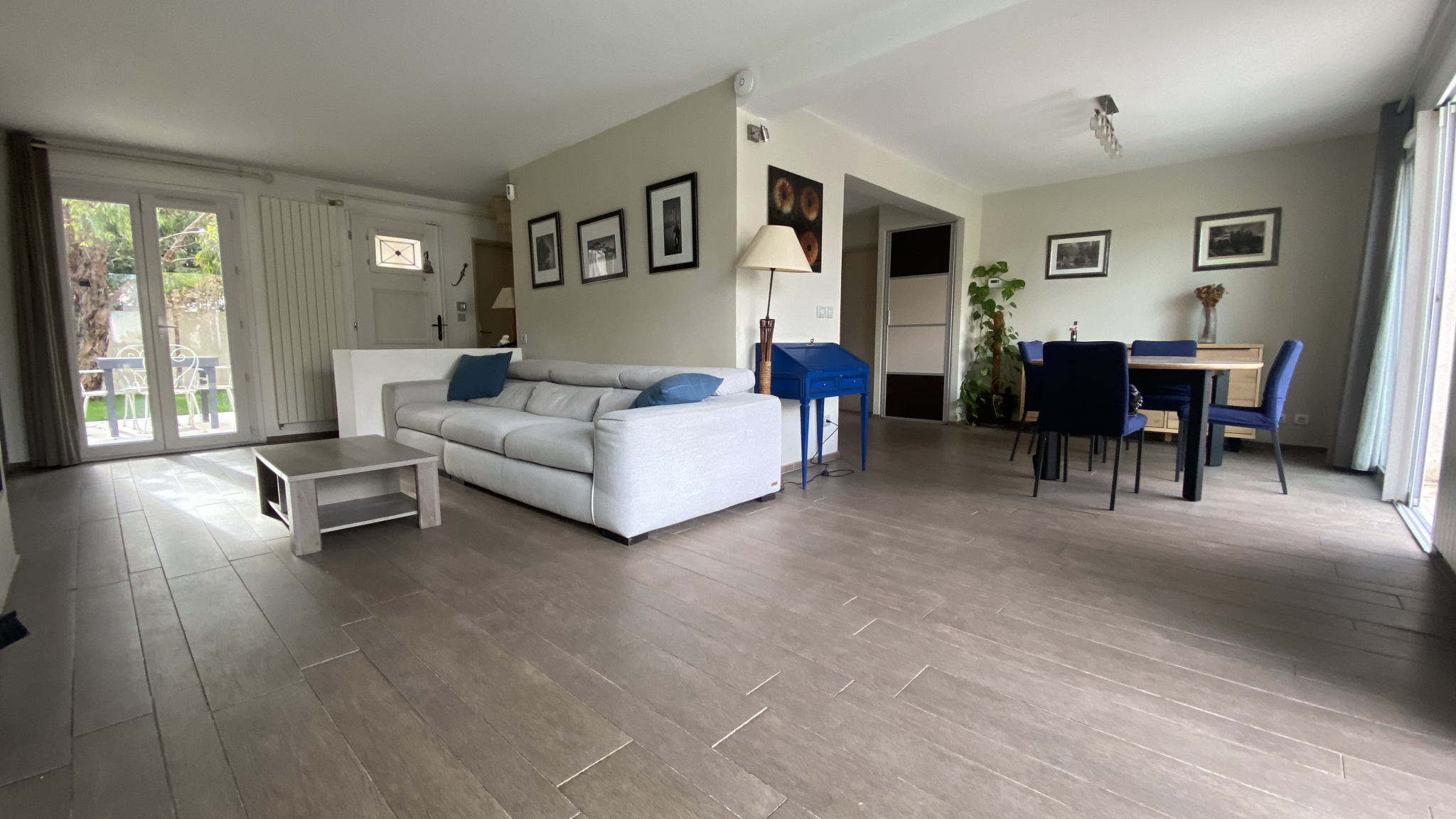 ... baigné de lumière naturelle grâce à une grande verrière. Ce lieu de vie s'ouvre sur un agréable jar...