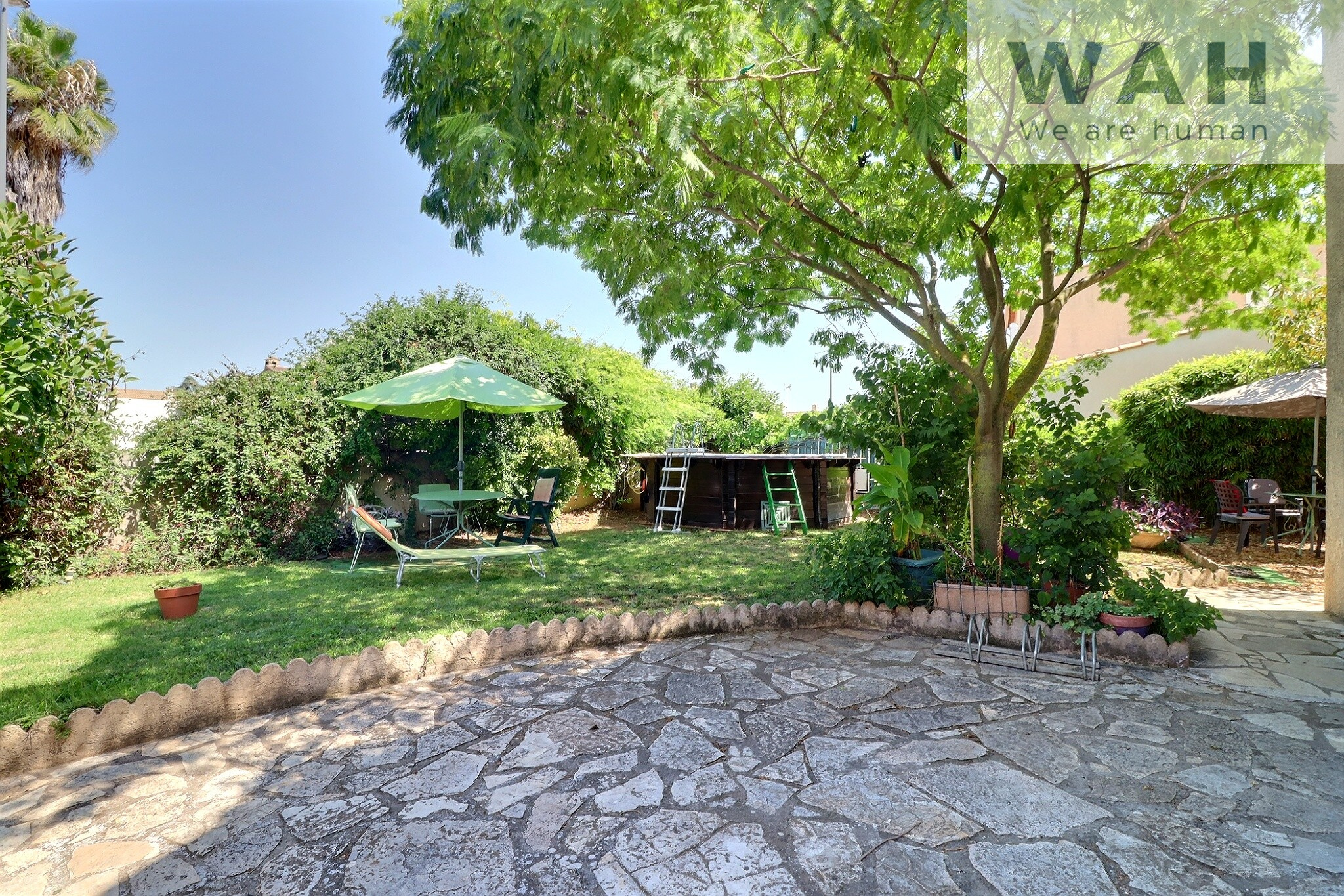 ... sur une parcelle arborée de plus de 600m2 avec forage, fleurs et arbres fruitiers.