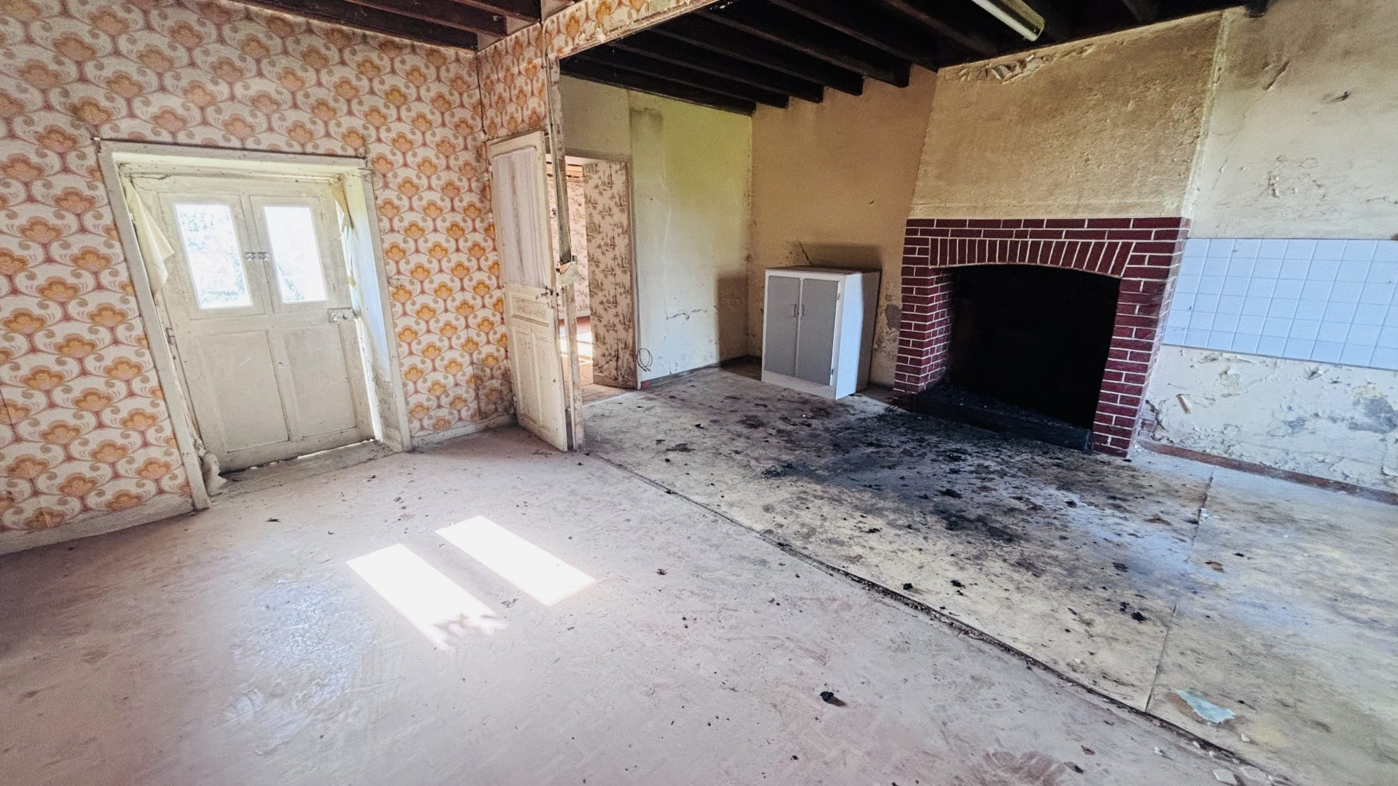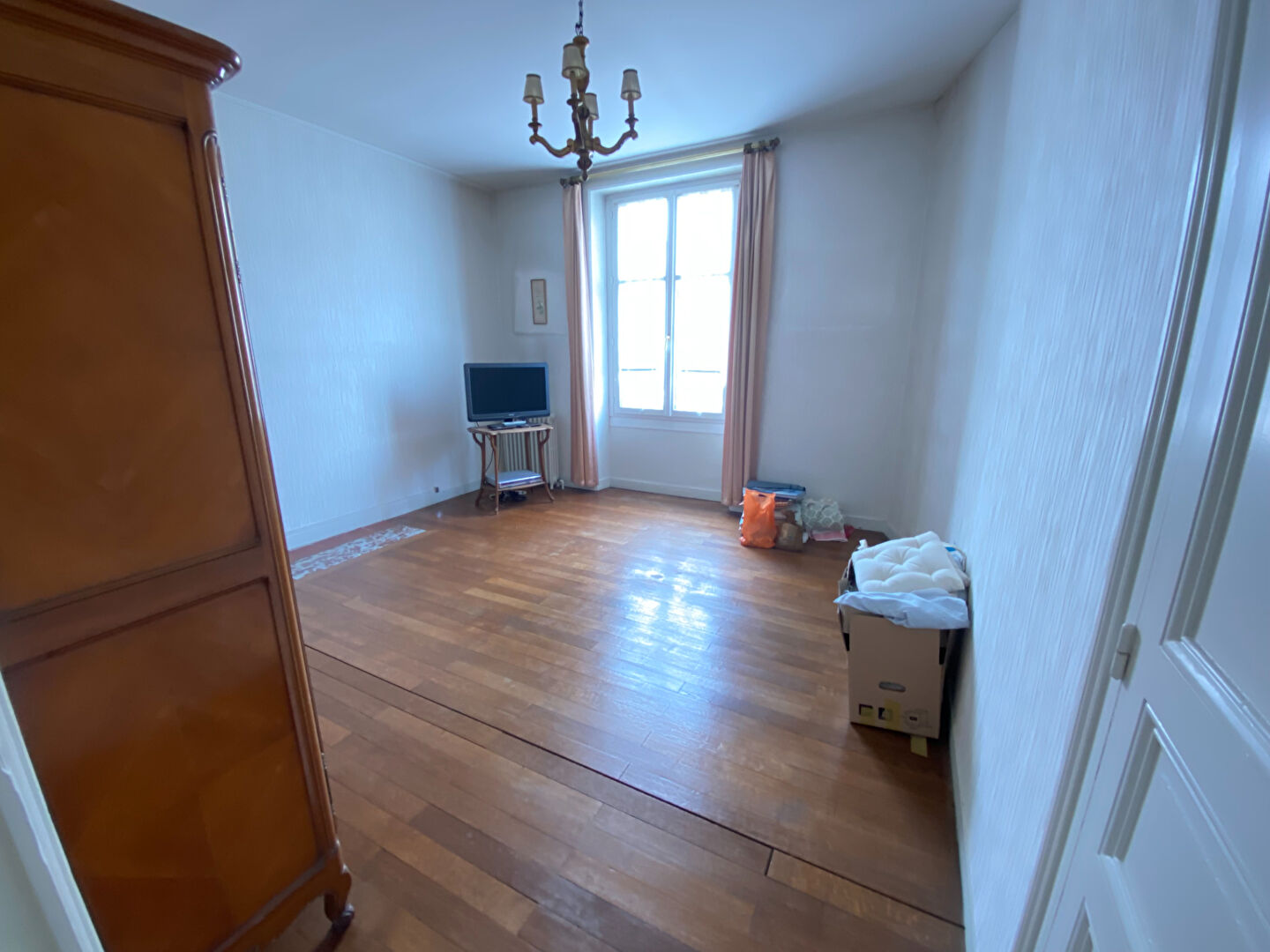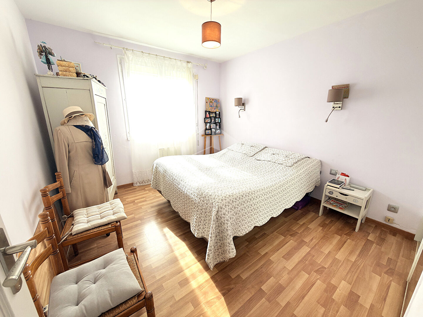 ...Rez-de-chaussée :Entrée sur tomettesÀ gauche : lumineuse chambre de 10 m² avec rangements, sur...