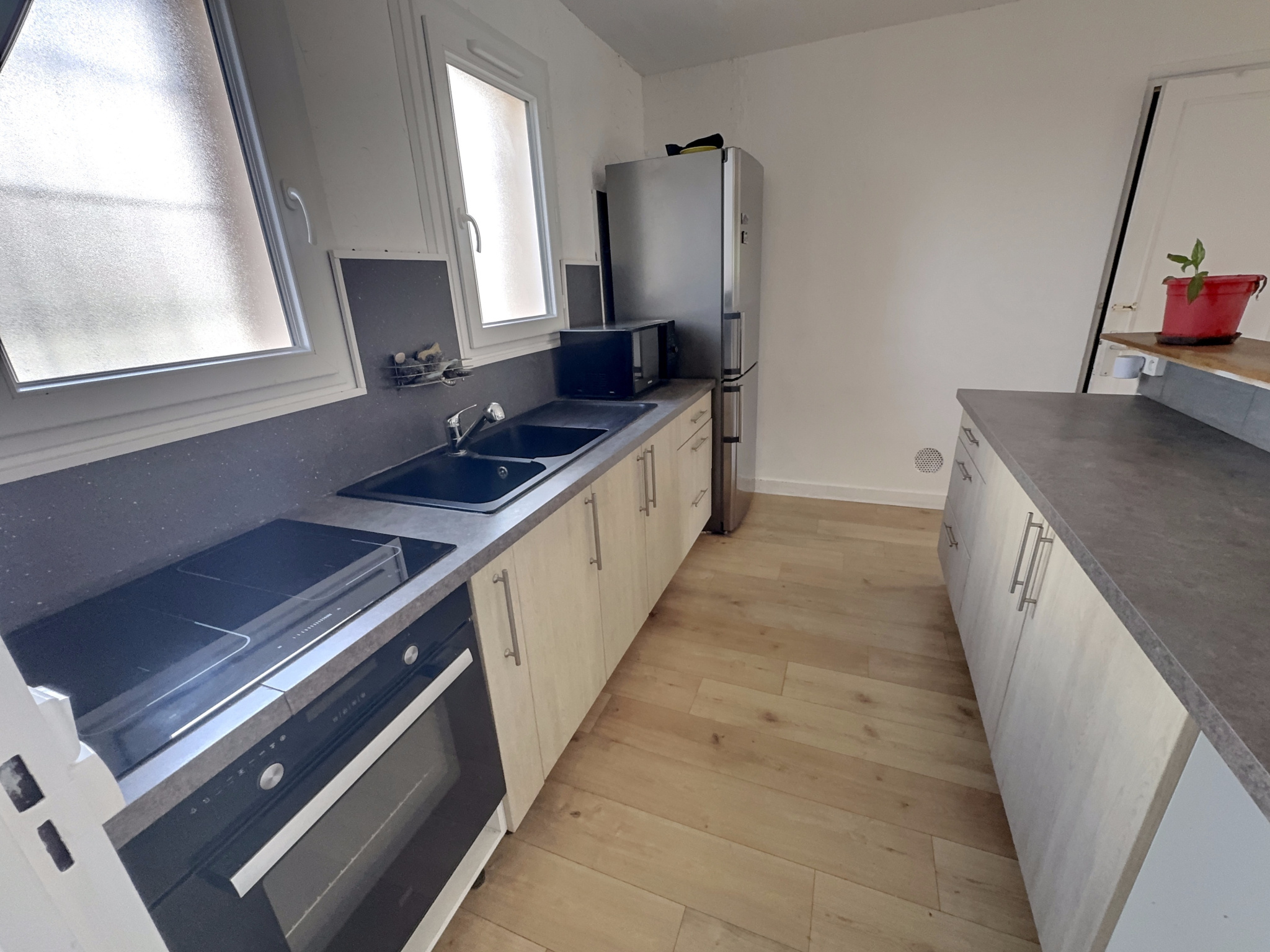 ...Elle offre un salon lumineux avec cuisine ouverte équipée d'environ 35 m2, trois chambres avec...