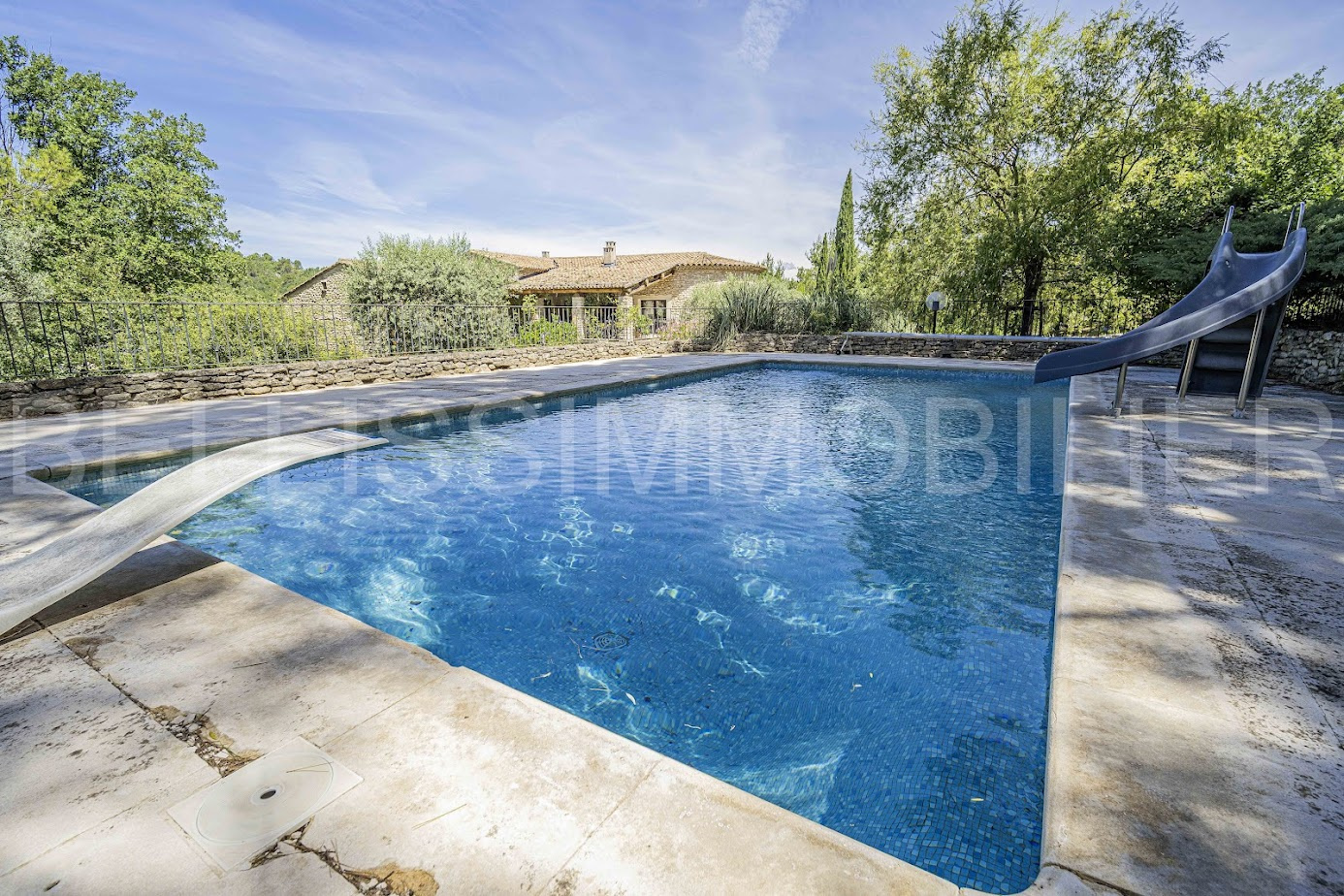 ...Sur un vaste terrain avec piscine orientée plein sud et de nombreuses terrasses, la maison...