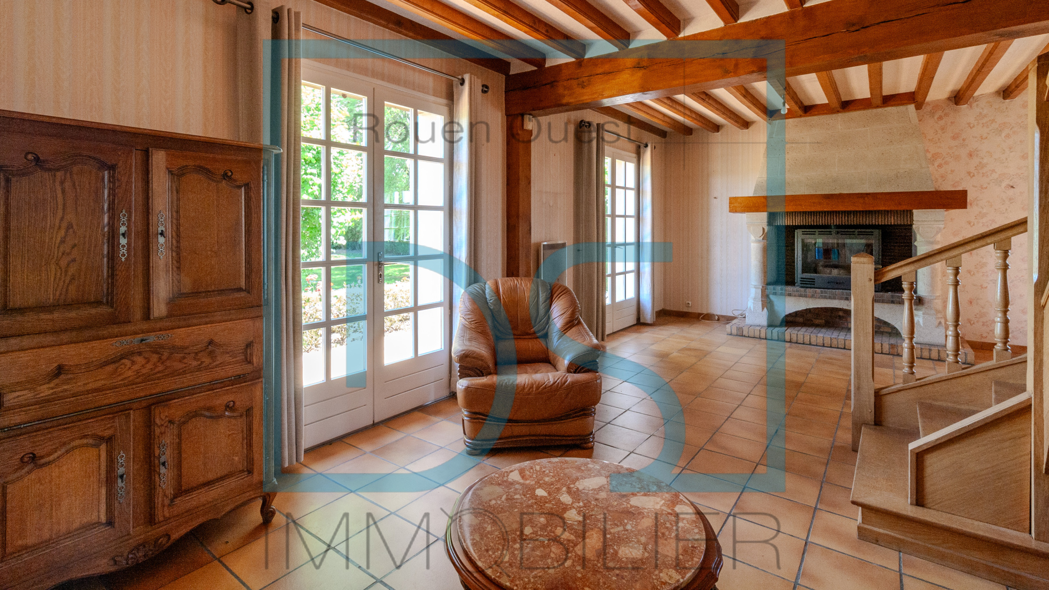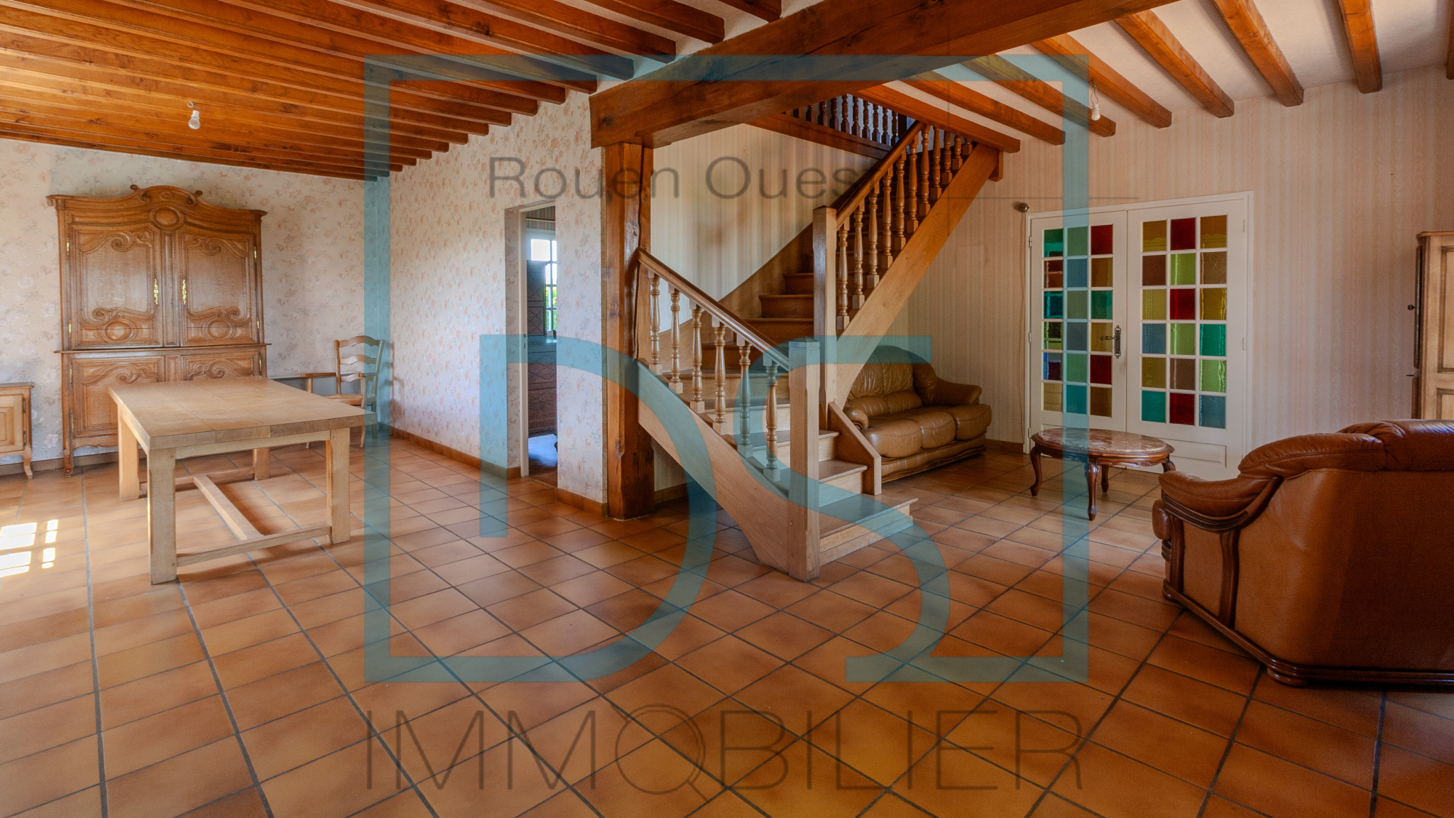 ...Vous commencerez la visite par une grande entrée lumineuse desservant un salon en L d'environ 44...