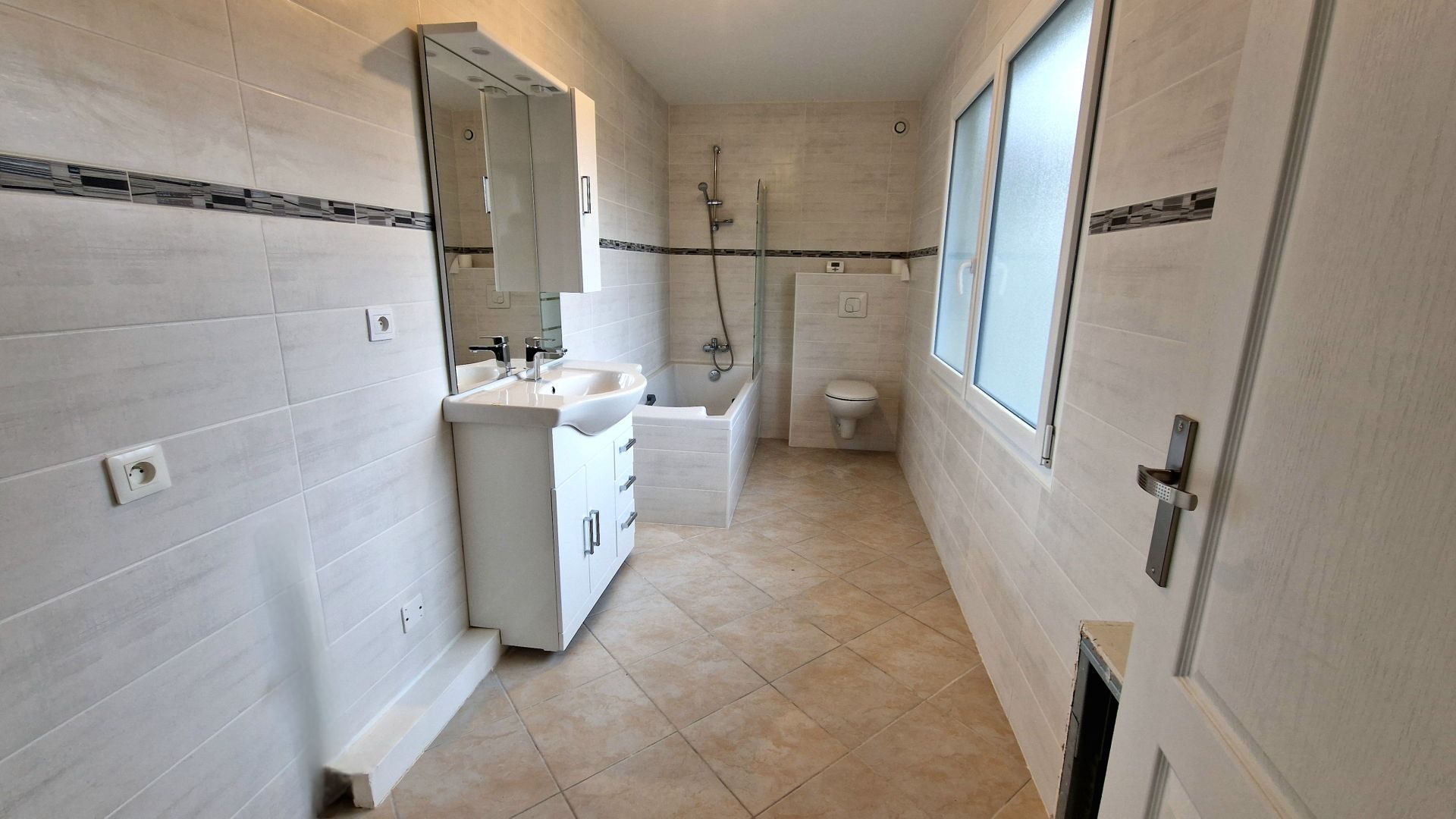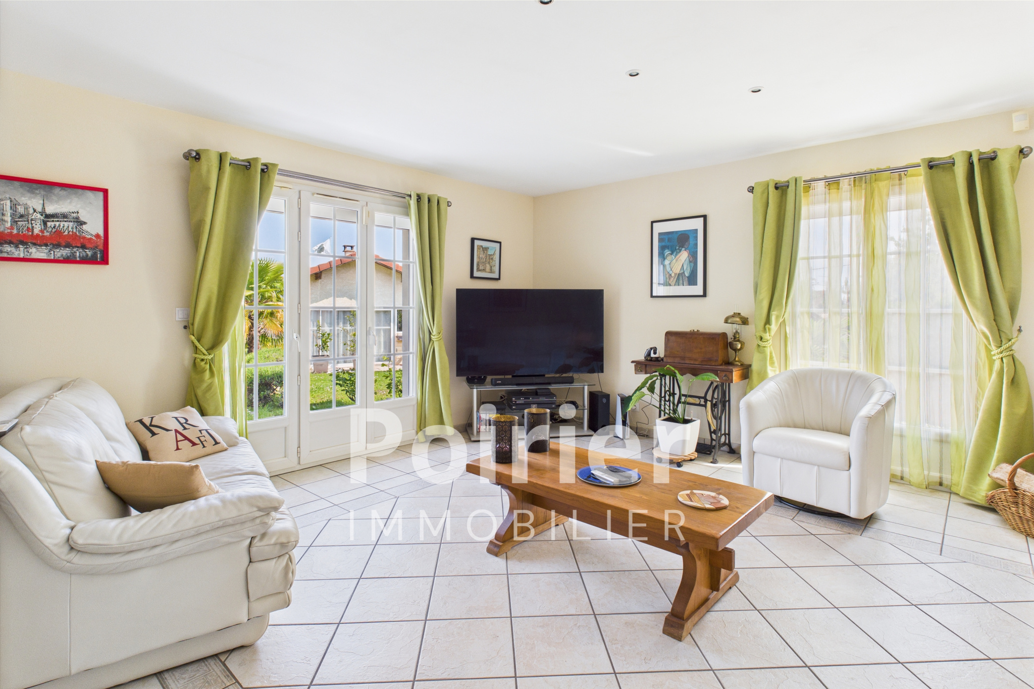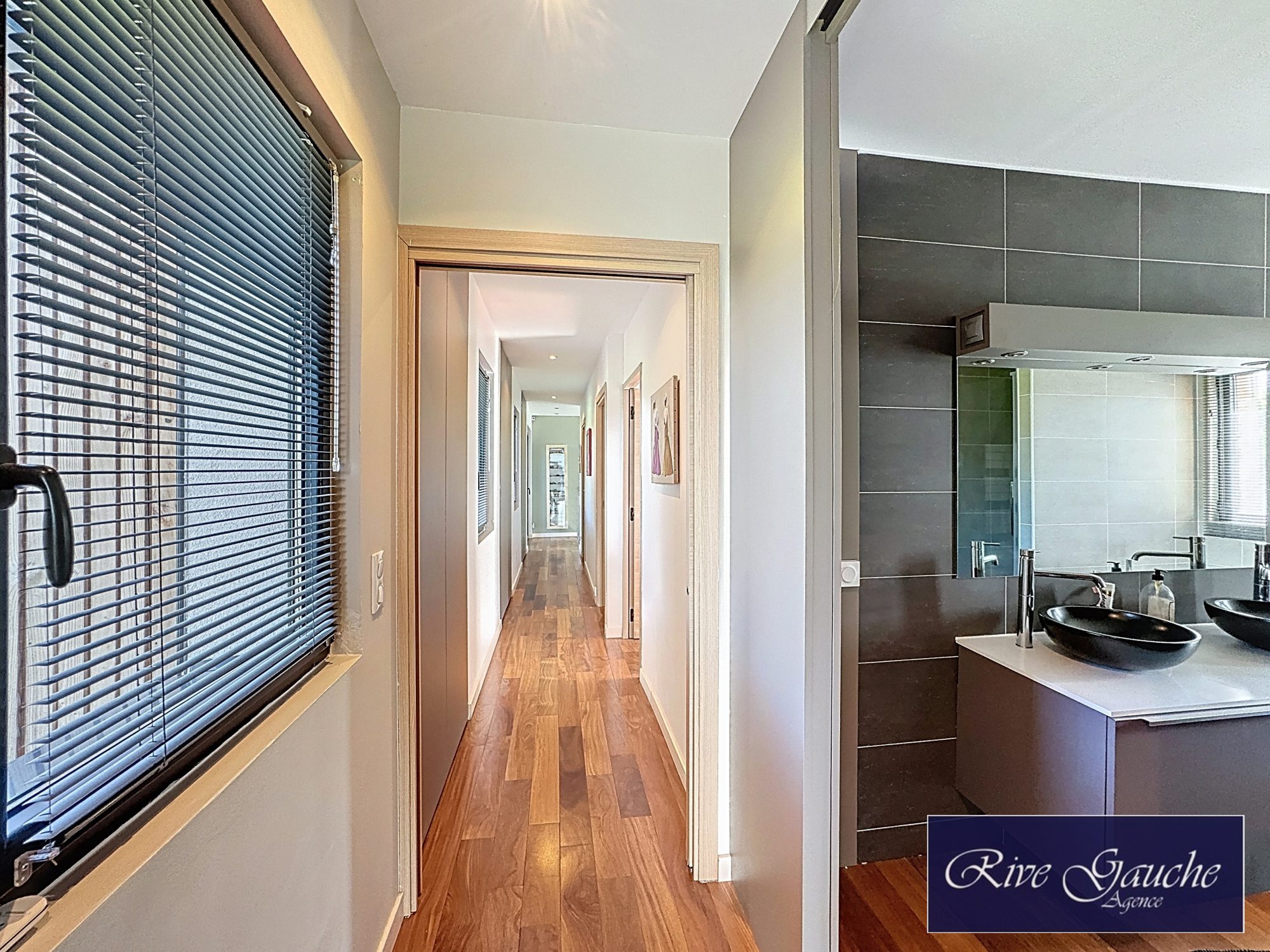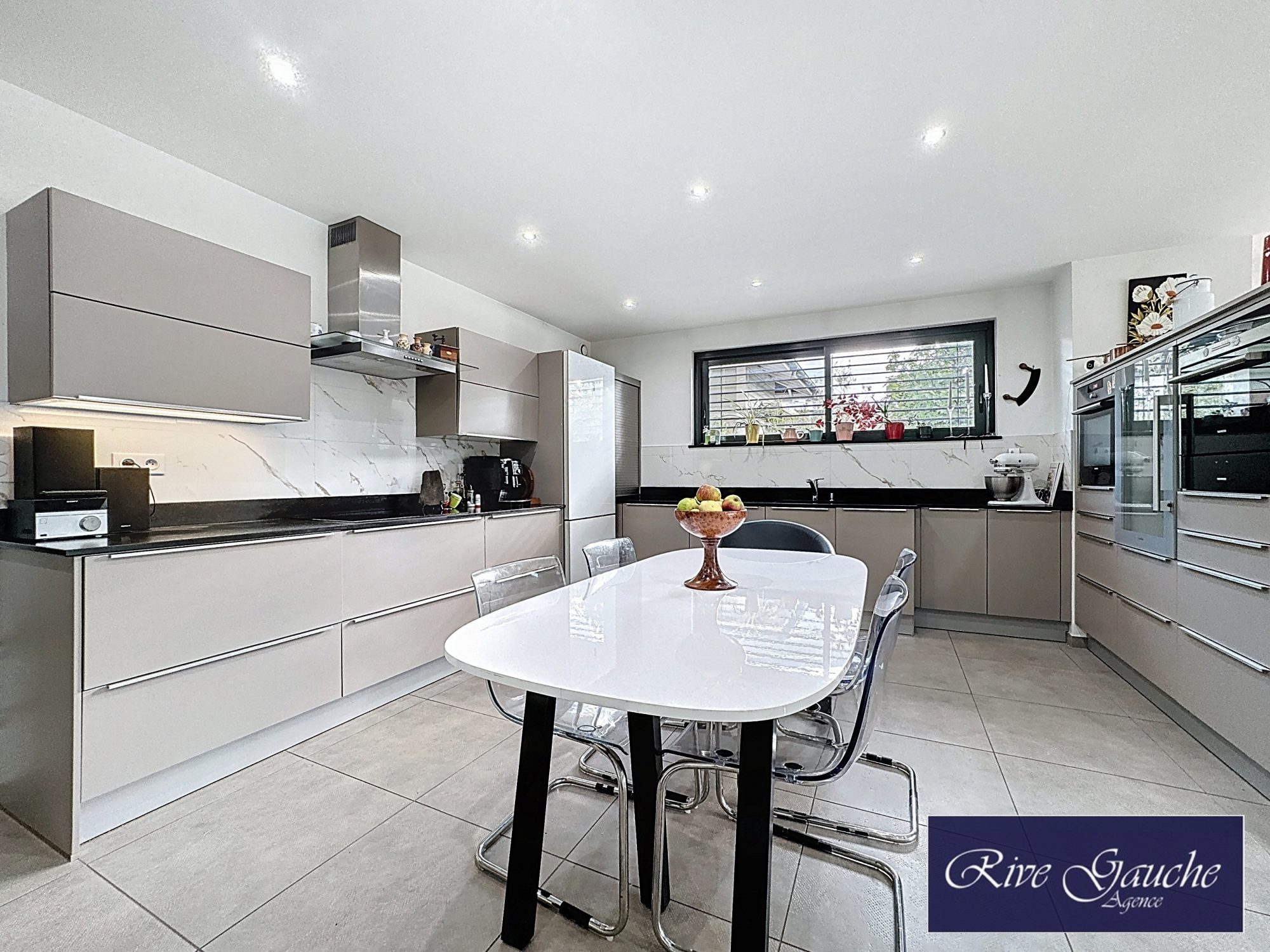 ...Au rez-de-chaussée, un hall donnant sur une grande pièce de vie très lumineuse avec sa cuisine...